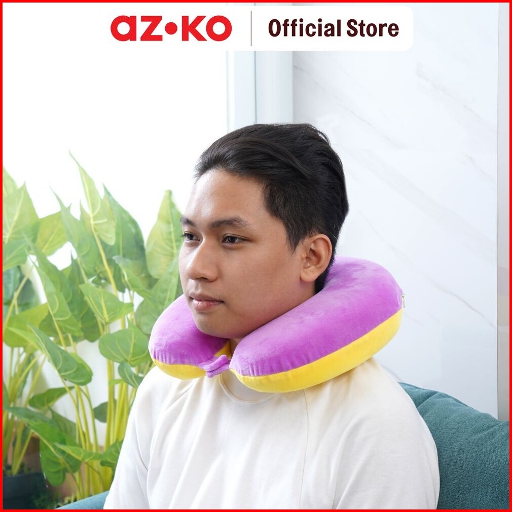 Azko Passport Tulip Bantal Leher - Kuning Ungu Neck Cushion Travel Bantal Mobil U-neck Car Pillow Sandaran Leher