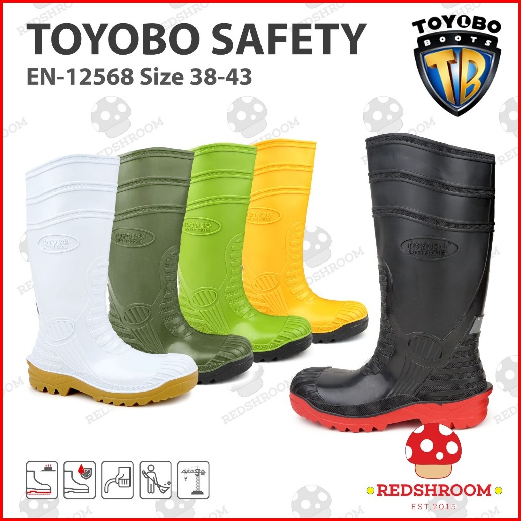 Toyobo Safety En 12568 Sepatu Boots Safety Tinggi Putih Hitam Kuning Hijau Lime Steel Toe Besi Lokal