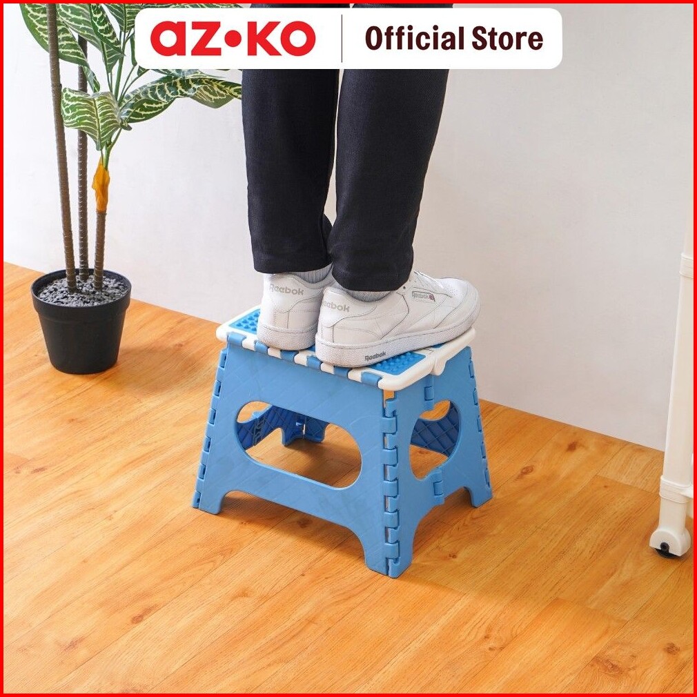 Azko Soleil 27 Cm Bangku Pijak Lipat - Biru Putih Foldable Step Stool Bangku Lipet Kursi Pijakan Serbaguna