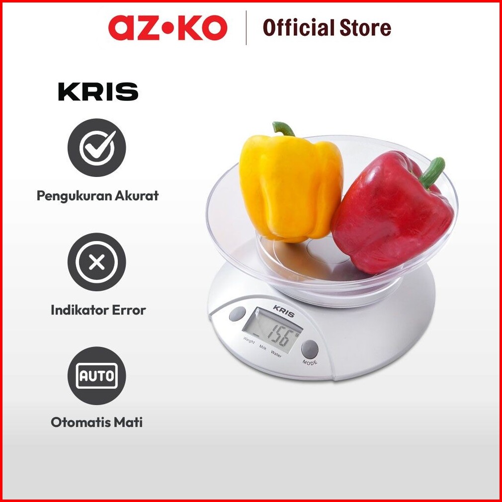 Azko Culinart 5 Kg Timbangan Dapur Digital - Silver Kitchen Scale Alat Pengukur Berat Bahan Makanan Serbaguna Perlengkap