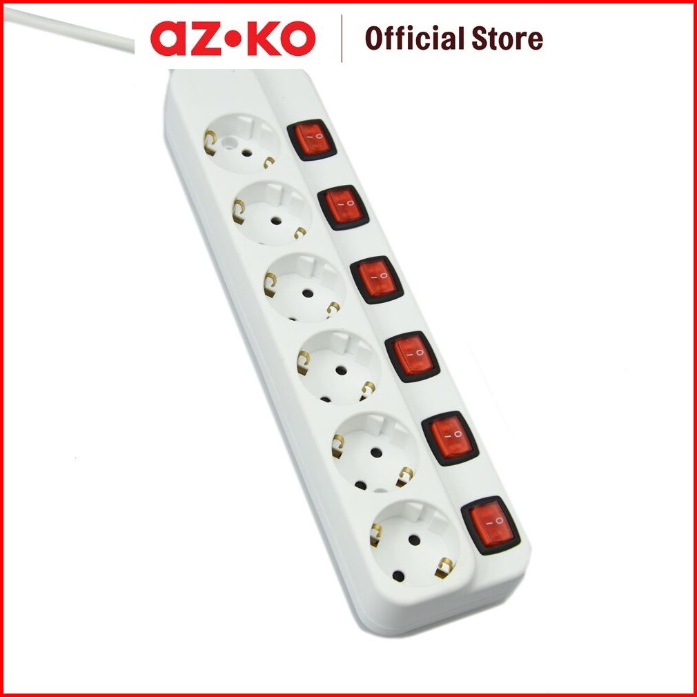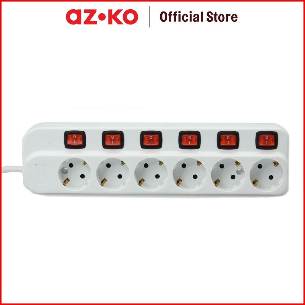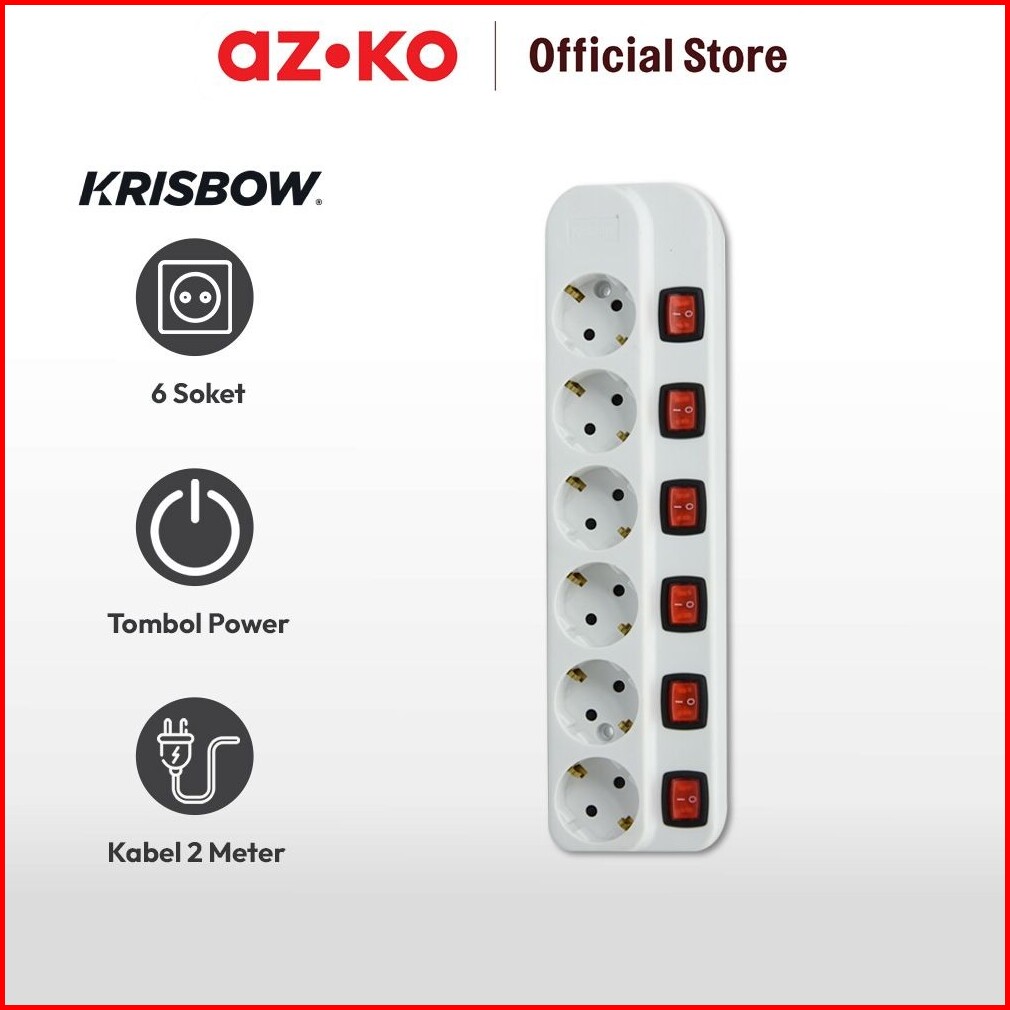 Azko Krisbow Stop Kontak 6 Socket Dengan Tombol On Off Kr-4368 Putih Electric Socket Terminal Colokan Listrik Kotak Kont