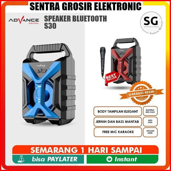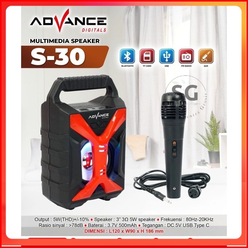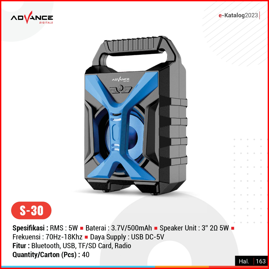 Advance Speaker Bluetooth S30 Free Mic Karaoke Speaker Wireless Salon Aktif Portable Speaker