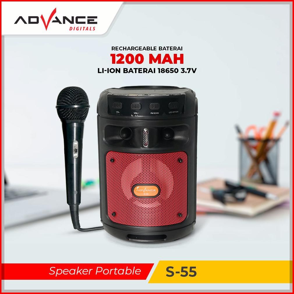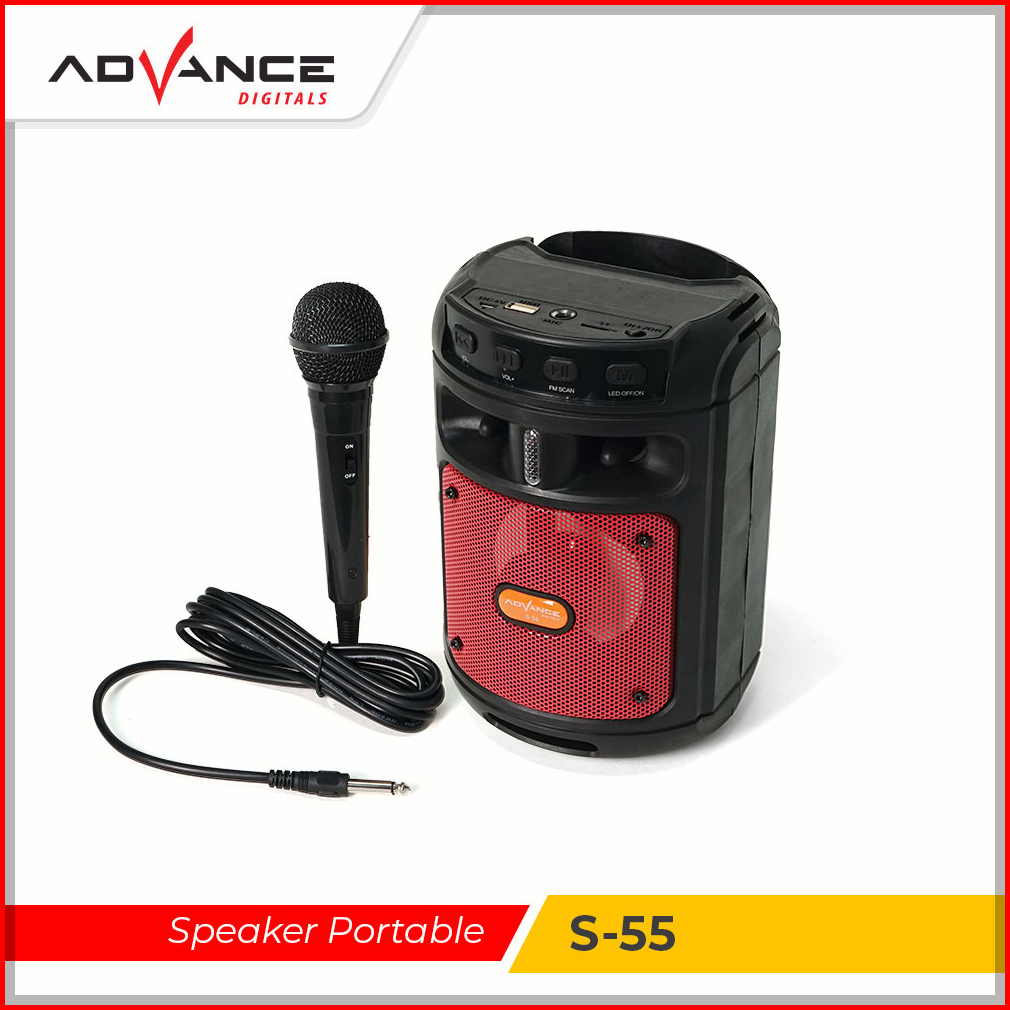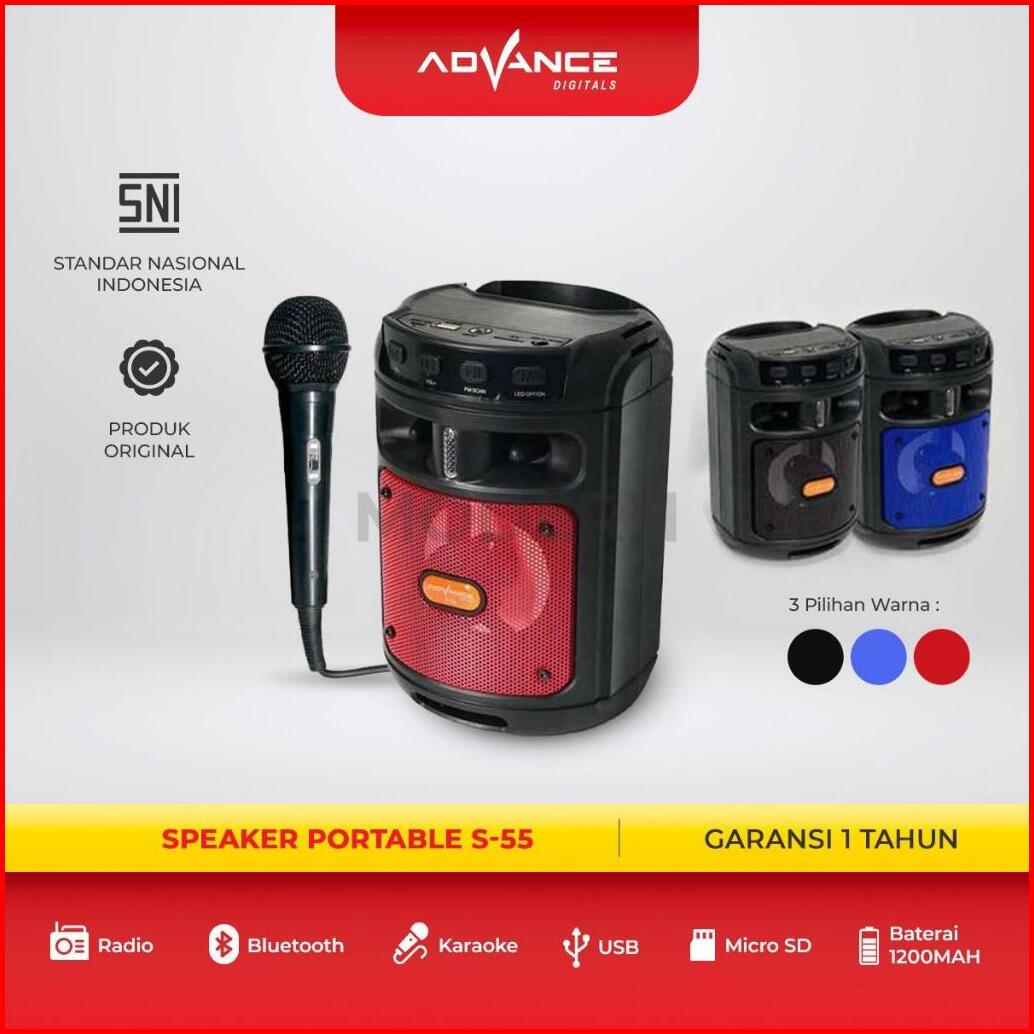Free Mic Advance Speaker Bluetooth S-55 Portable Free Mic Karaoke Salon Aktif Radio Fm Box Music Speaker Aktif Garansi R