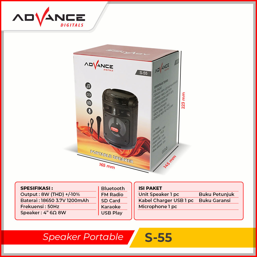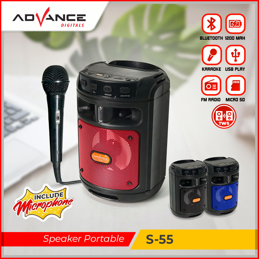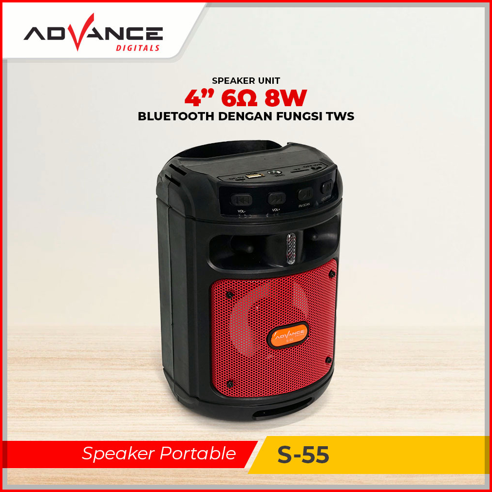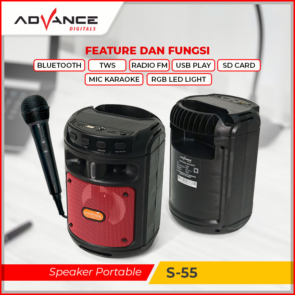 Free Mic Advance Speaker Bluetooth S-55 Portable Free Mic Karaoke Salon Aktif Radio Fm Box Music Speaker Aktif Garansi R