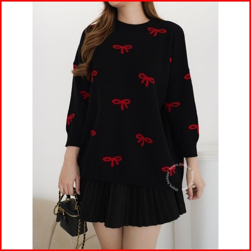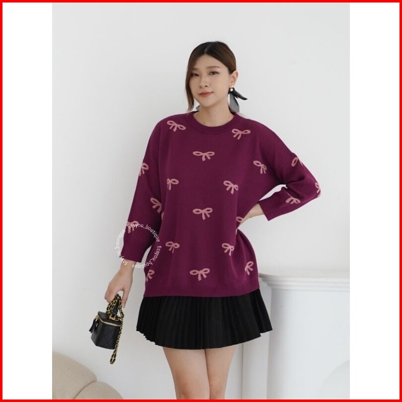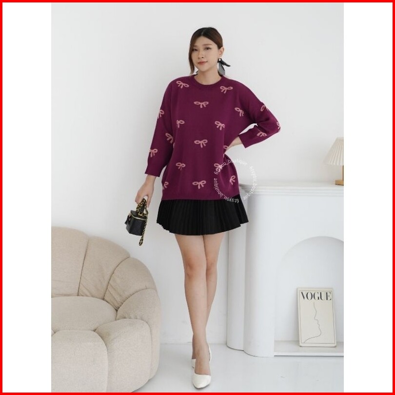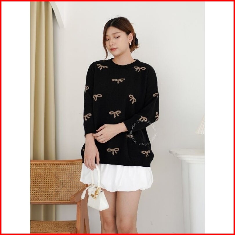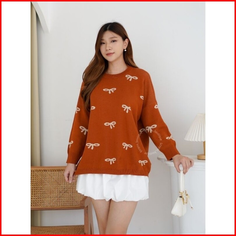 Allea Oversize Knit Tops Baju Atasan Rajut Katun Sweater Wanita Tangan Panjang Bigsize Hijab Friendly Pita