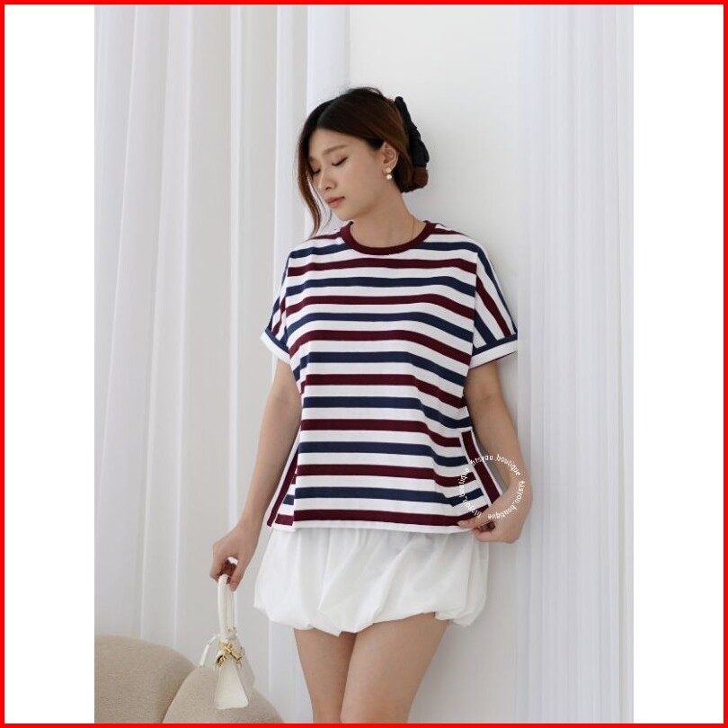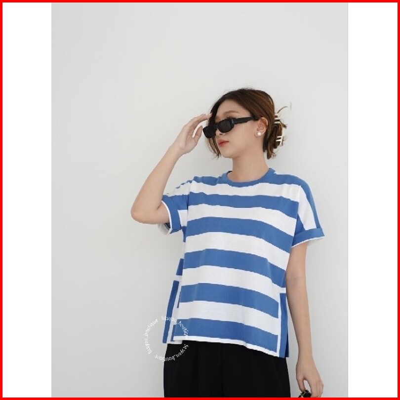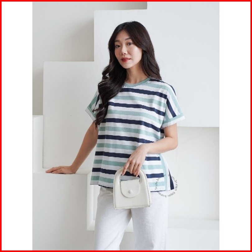 Kaylin Stripe Tee Baju Kaos Atasan Wanita Katun Garis Tangan Pendek