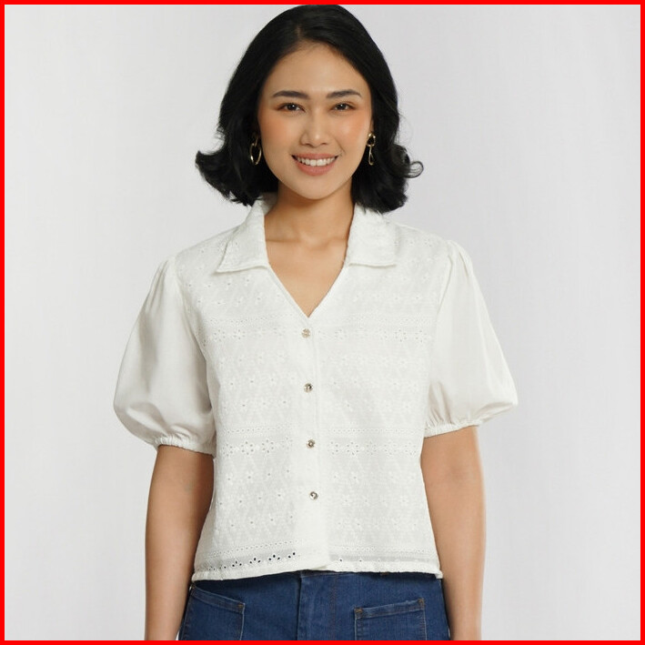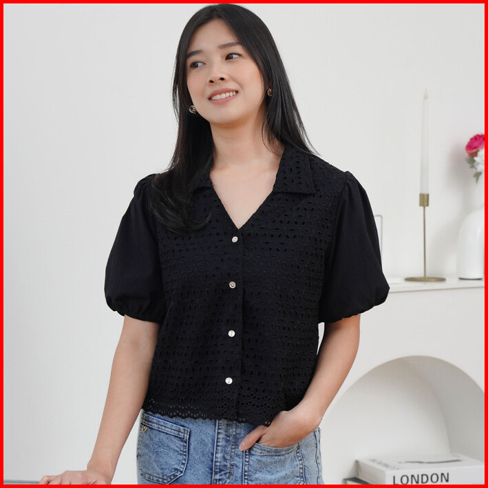 Momelca - Rara Cotton Top Atasan Blouse Wanita Blouse Katun Casual Elegan