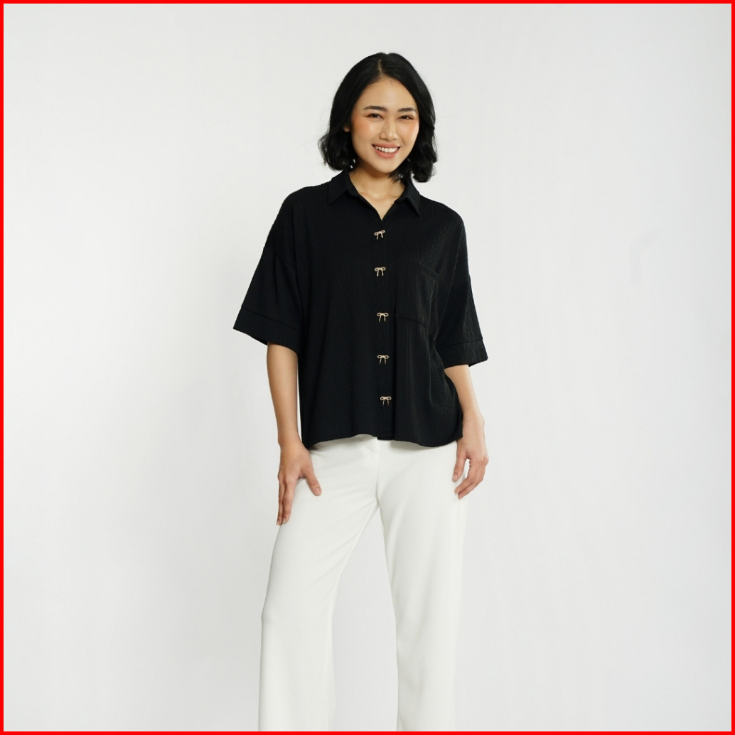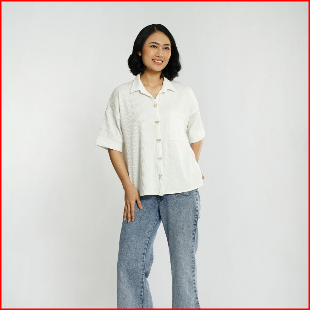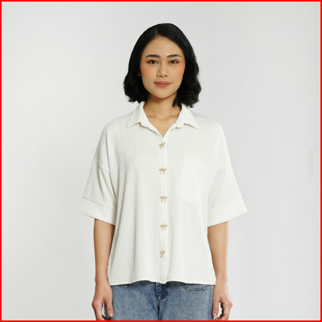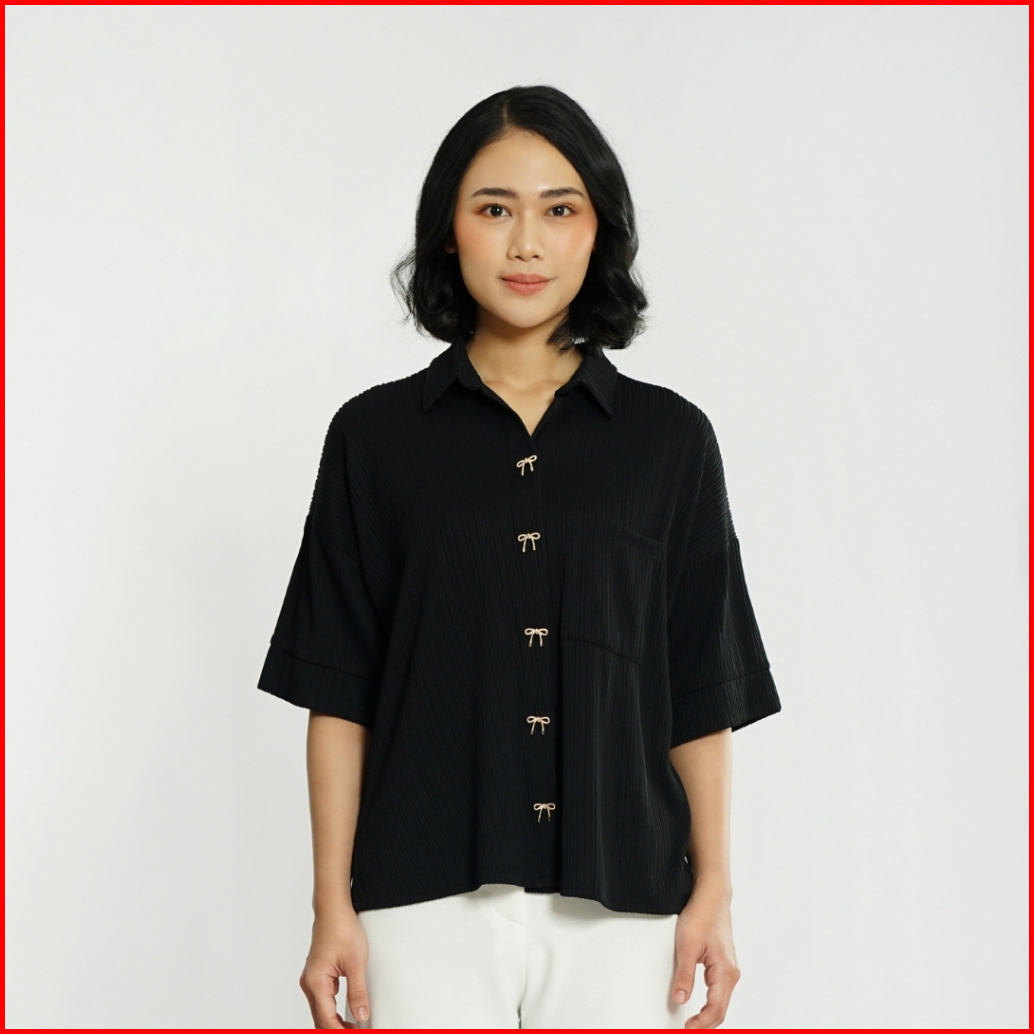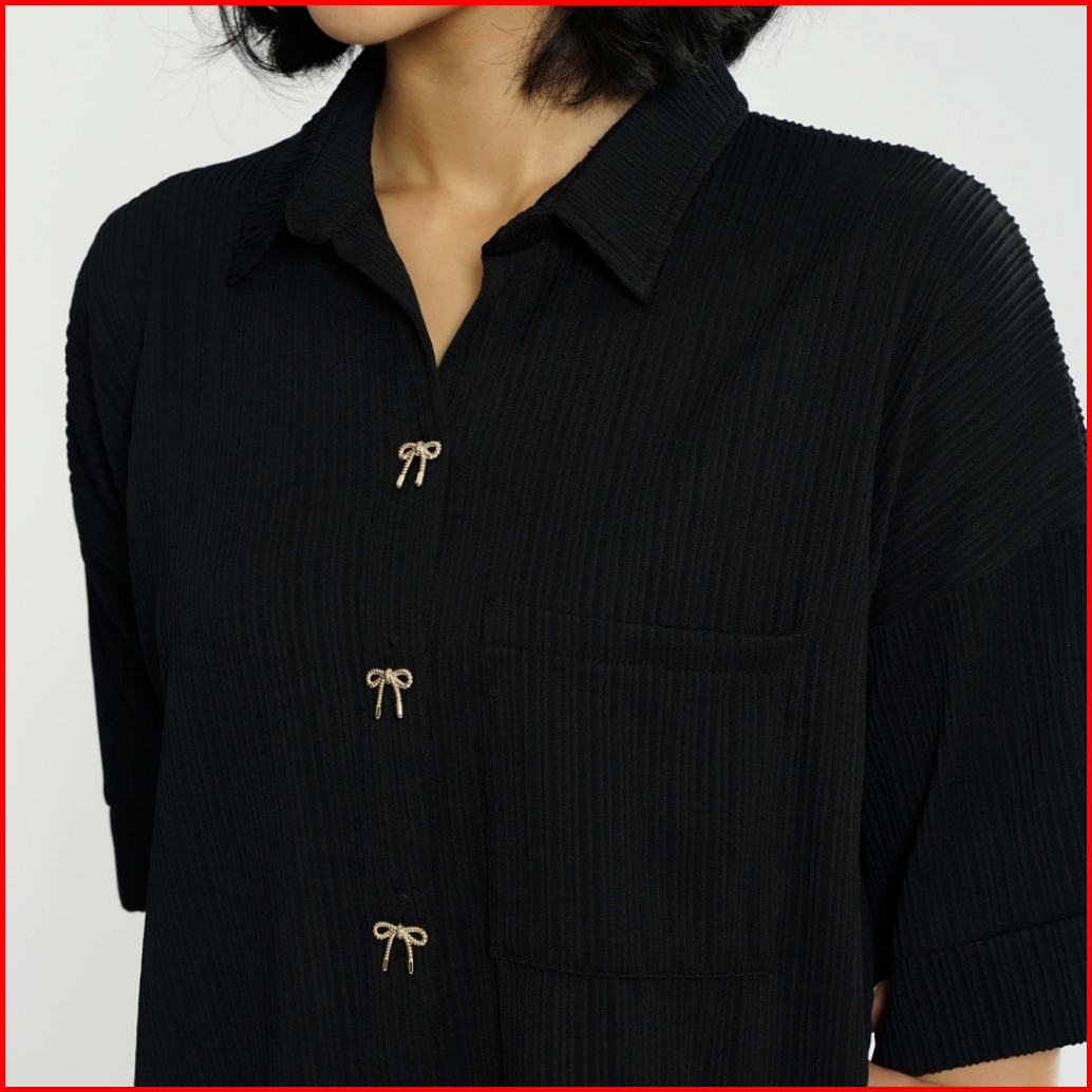 Momelca Alanna Daily Shirts - Atasan Kemeja Pleated Knit Wanita