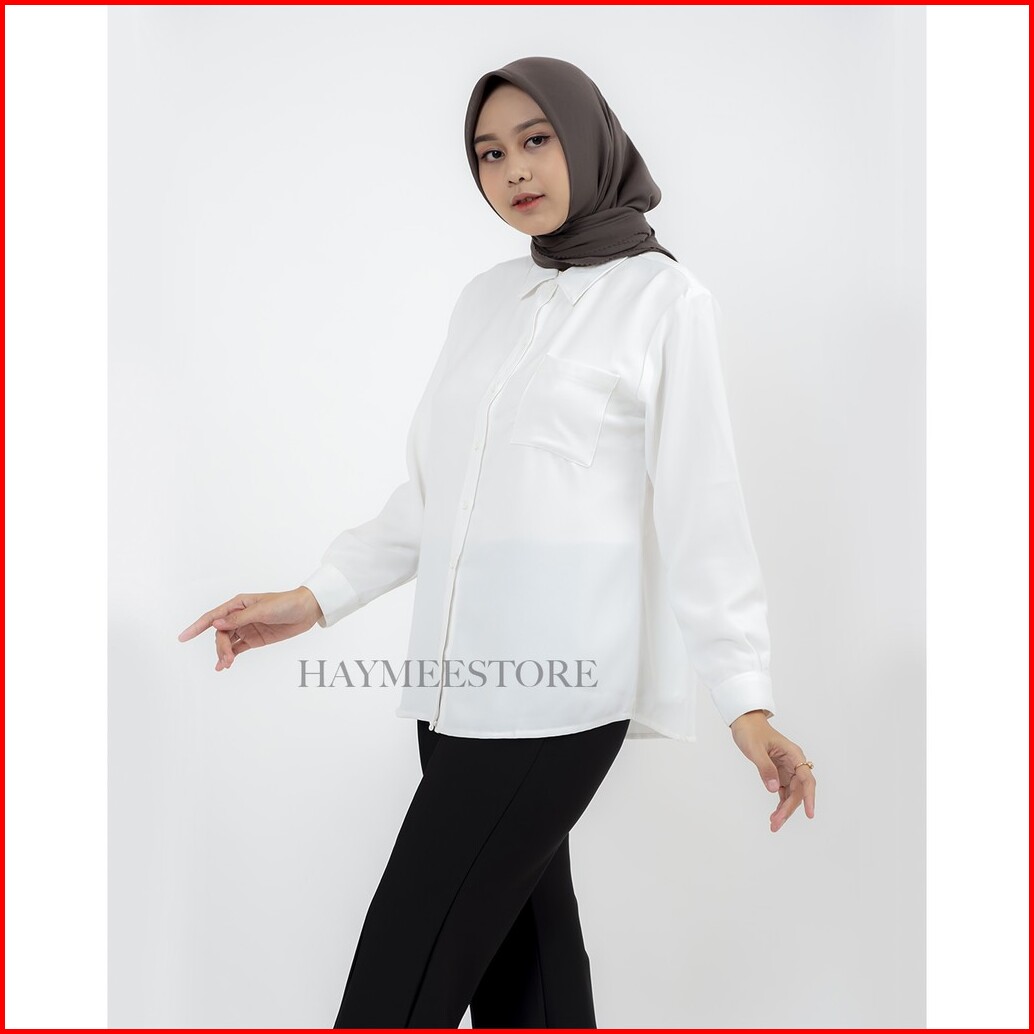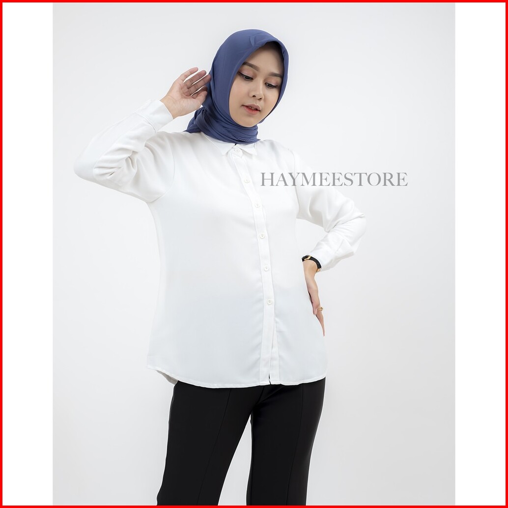 Haymeeidn - Kemeja Putih Polos Wanita Baju Kantor Cewek Formal Atasan Kerja Cewe Bahan Moscrape