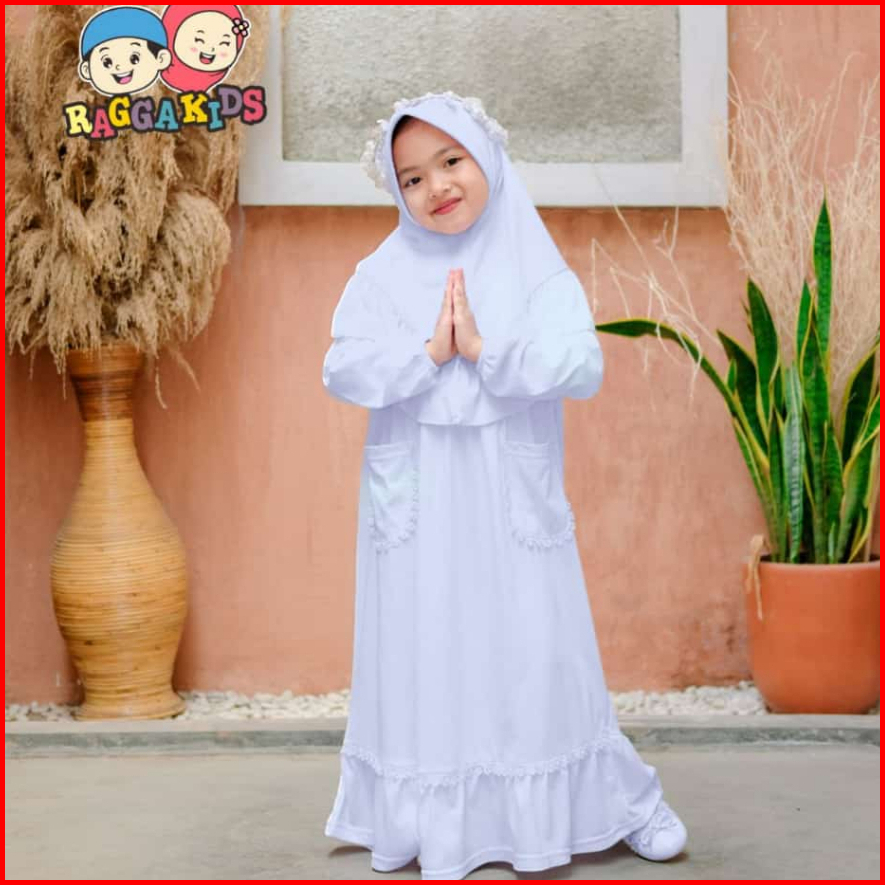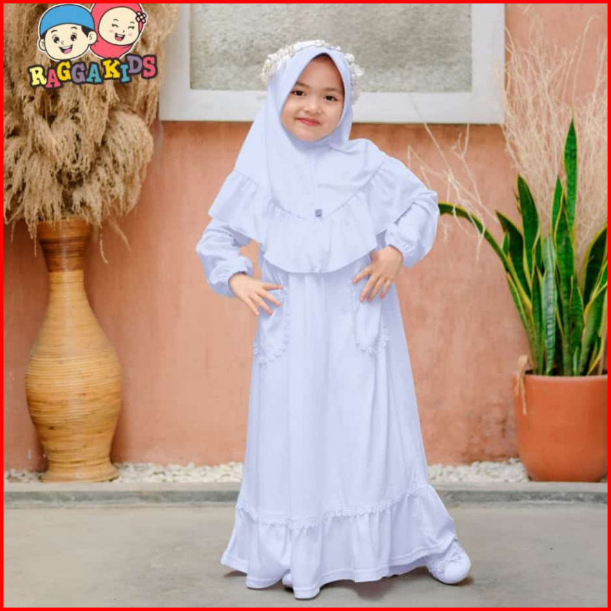 Baju Pakaian Gamis Muslim Muslimah Long Dress Set Anak Anak Perempuan Warna Putih Raggakids Rg52