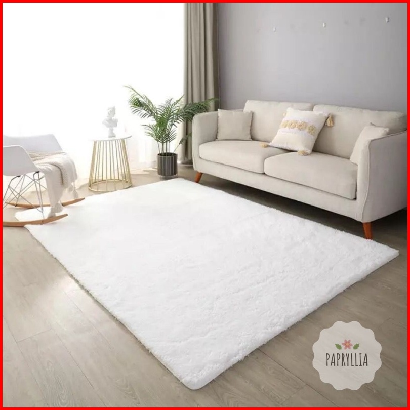 Krucils Store - Karpet Bulu Rasfur Karpet Lantai 200x150cm Antislip Busa Tebal Putih