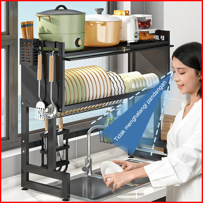 Rak Piring Wastafel Stainless Steel Tertutup Rak Dapur Dan Peralatan Dapur Kokoh Kuat