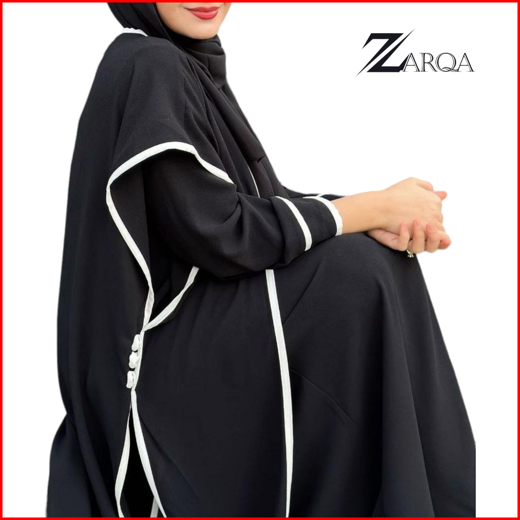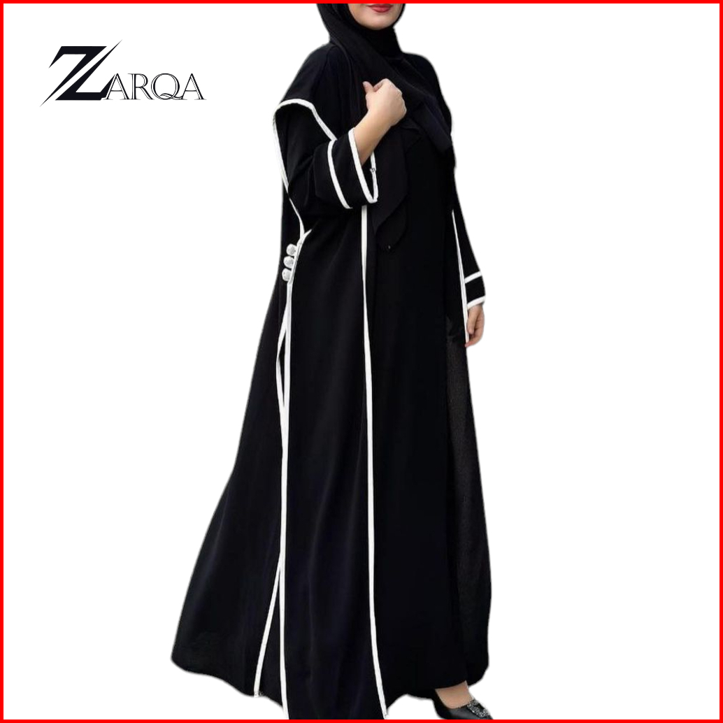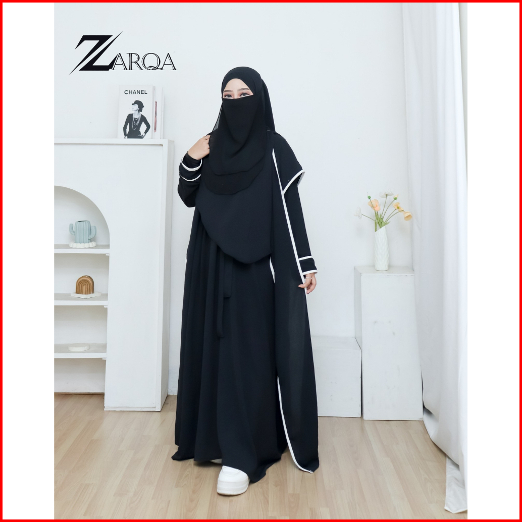 Zarqa-maura Abaya Hitam Putih Turkey Abaya Set 2 In 1 Outer Dress Terpisah Remaja Gamis Muslim
