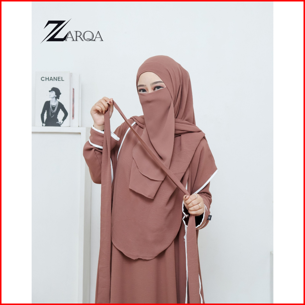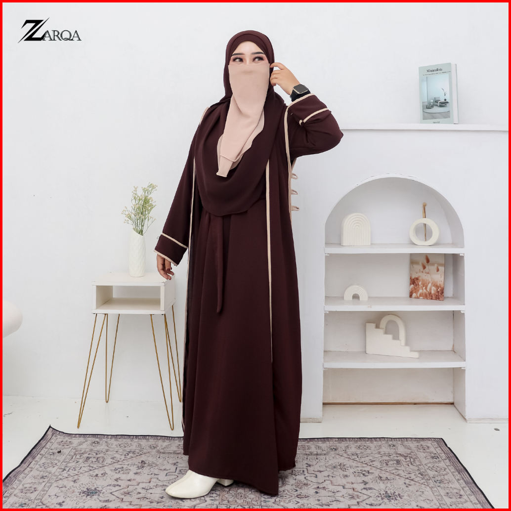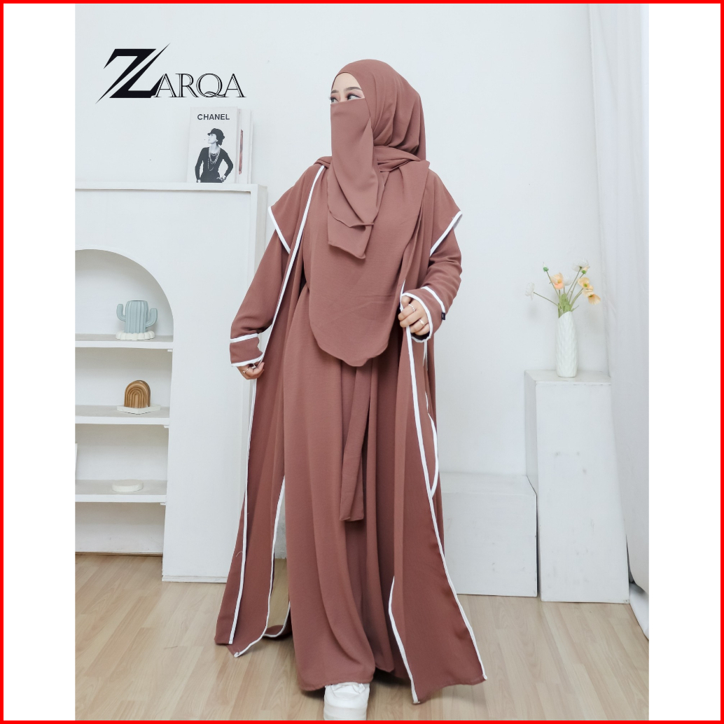 Zarqa-maura Abaya Hitam Putih Turkey Abaya Set 2 In 1 Outer Dress Terpisah Remaja Gamis Muslim