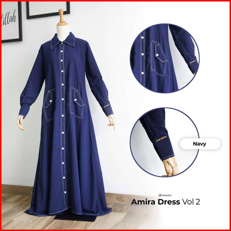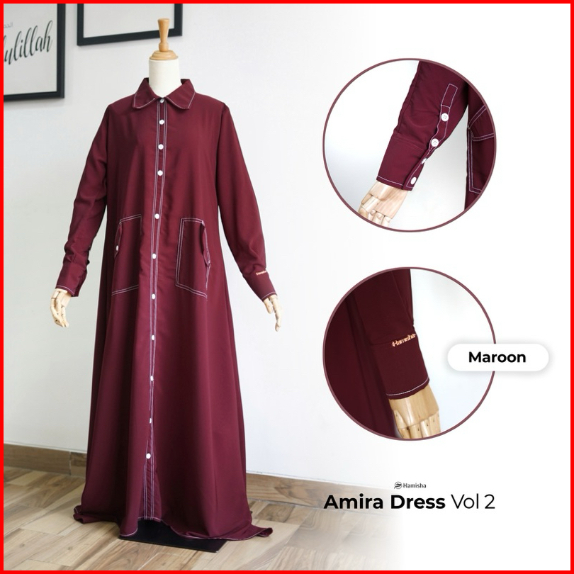 Amira Dress Abaya Vol.2 New Colour Dress Couple Moms Kids Size Lengkap Flowy Original By Hamisha