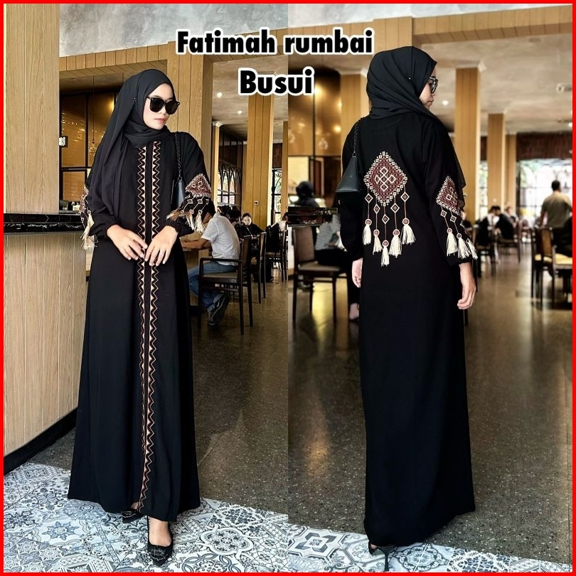 Abaya Hitam Gamis Wanita Terbaru Jettblack Fashion Muslim Wanita Kombinasi Bordir Fatimah Rumbai Busui