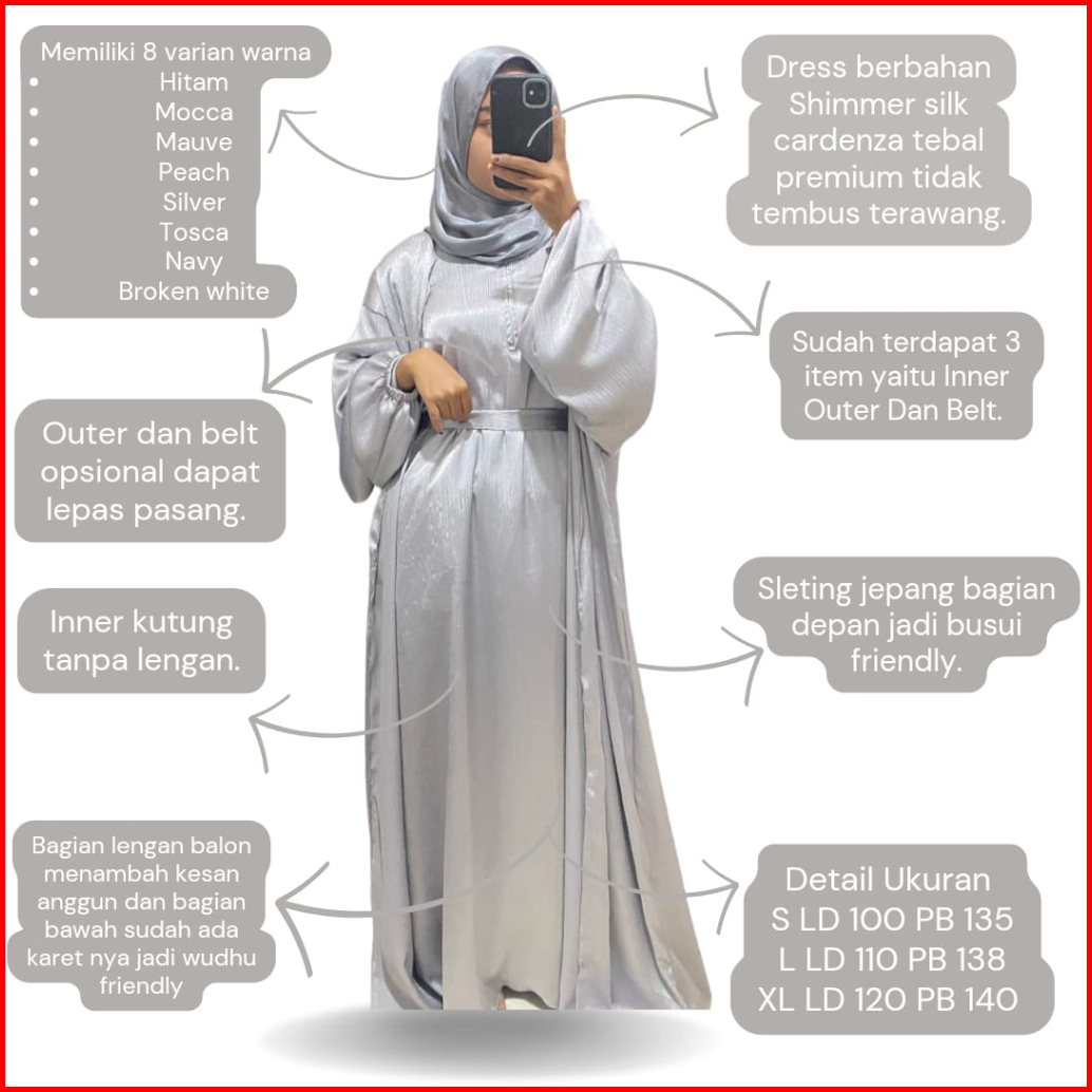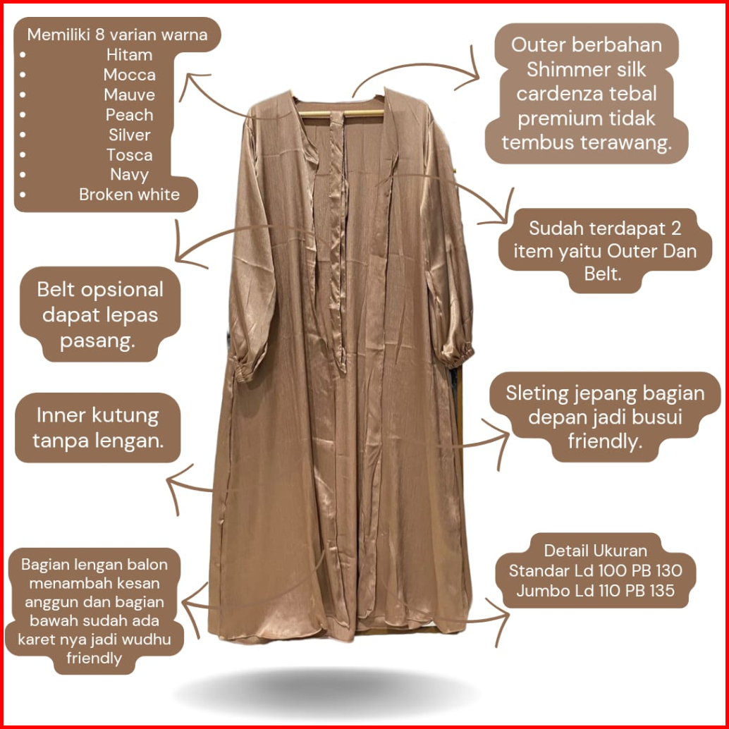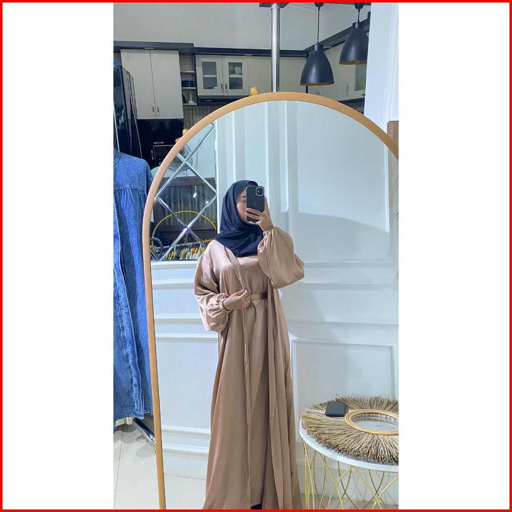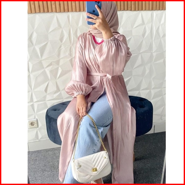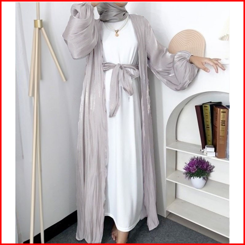 Misyelia Long Outer Kasual Abaya Shimmer Silk Free Belt Model Lengan Balon Ada Size S-m Dan L-xl