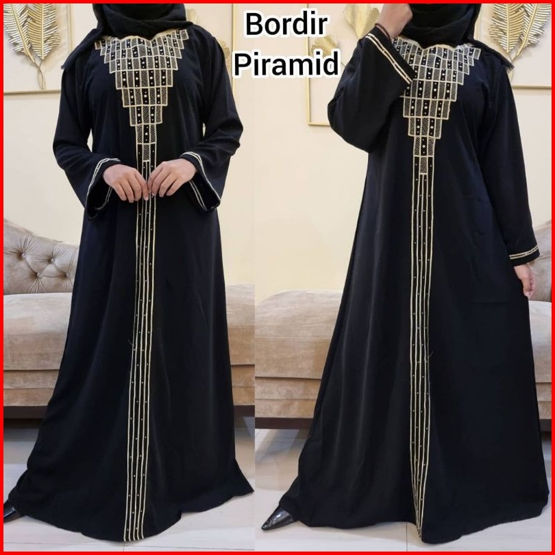 Abaya Hitam Turkey Bordir Piramid Bahan Jetblack Kualitas Boutique