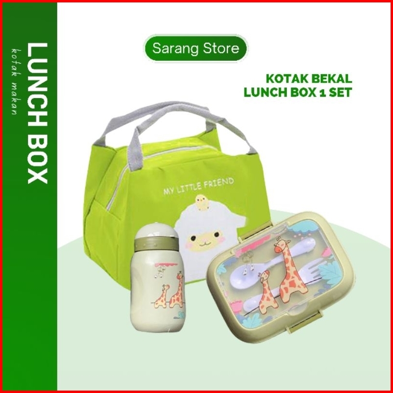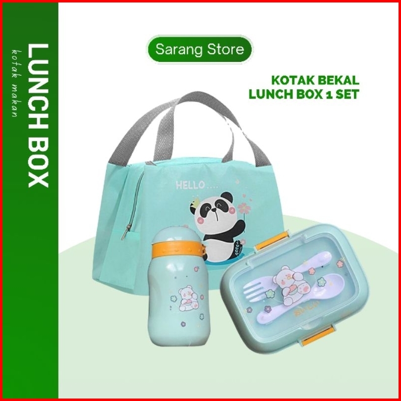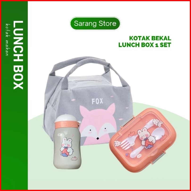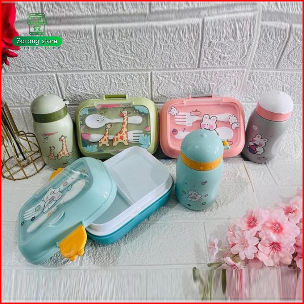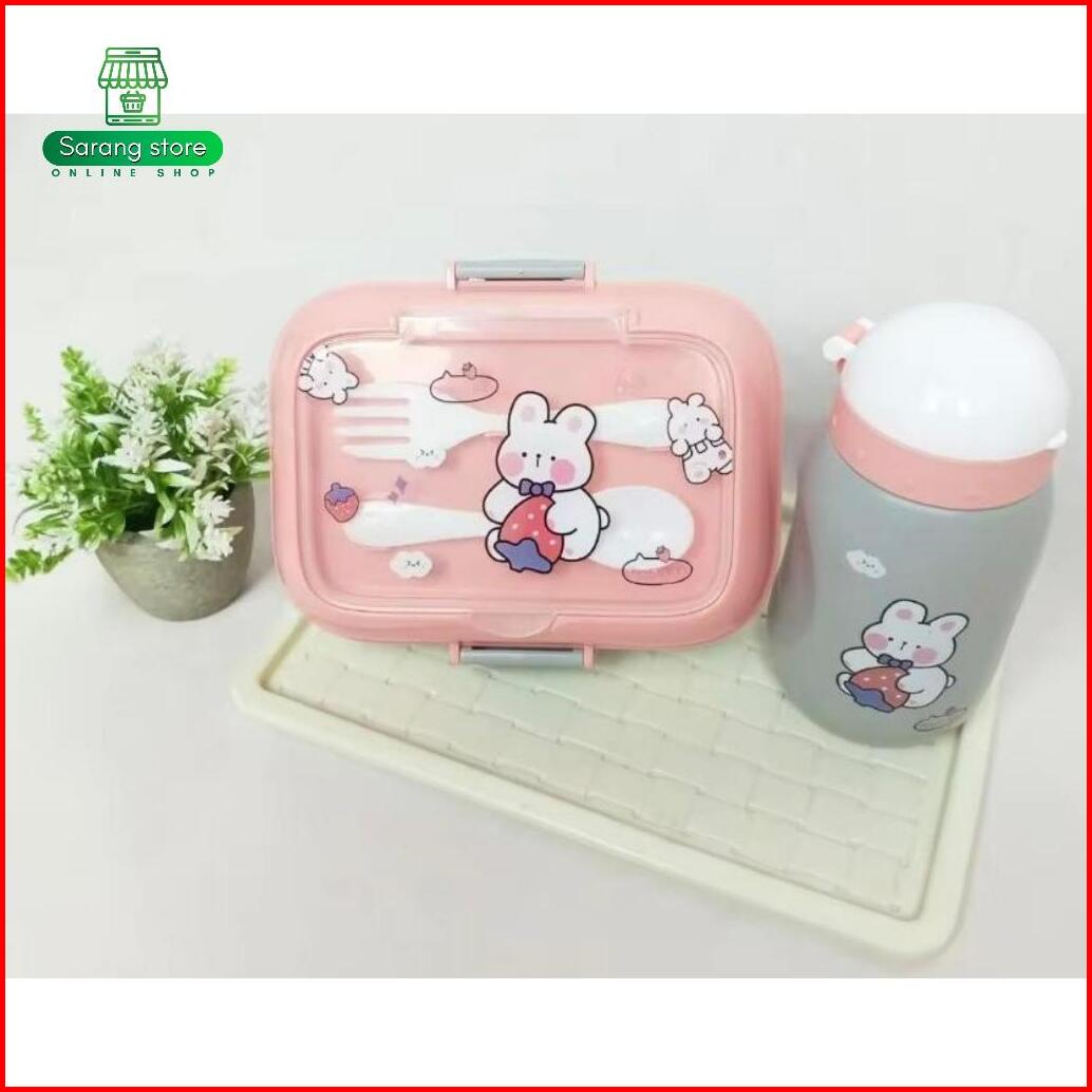 Lunch Box 1 Set Botol Minum Tas Bekal Kotak Tempat Makan Anak Sekolah Tk Sd Aesthetic Mini Lucu