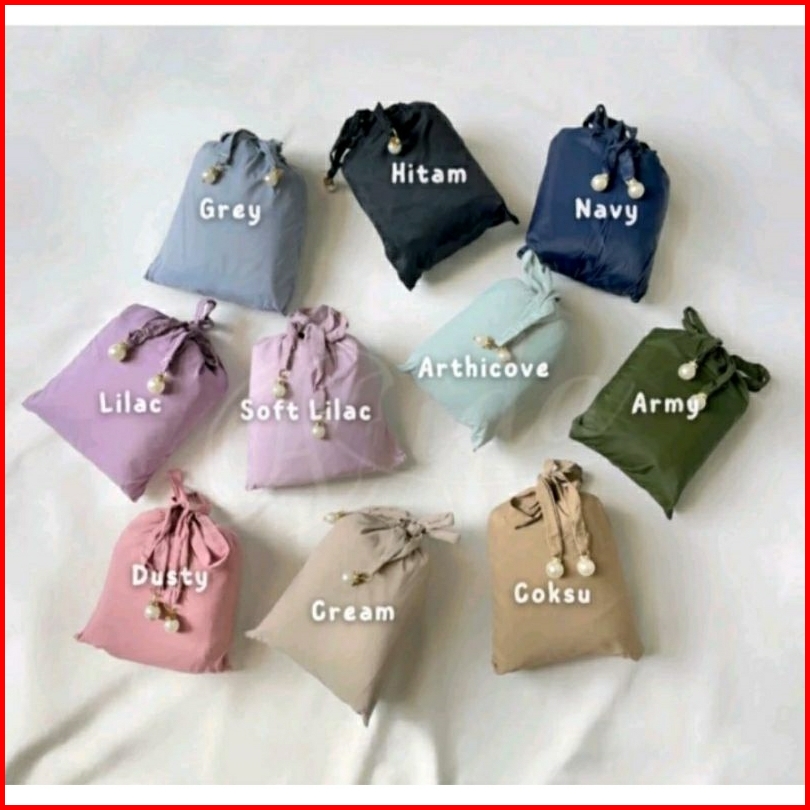 Nevy, Maroon, Hitam, Biru BCA, Biru oskadon, Biru Tua, Ping kemerahan, Fuschia, Lavender, Violet, Ungu Tua, Cinnamon, Jade, Tosca tua, Merah batta, Emerald, Pink sirup, Merah ati, Merah cabai, Abu sma, Kuning golkar, Hijau, Pink beby, Better, Cream, Mauve