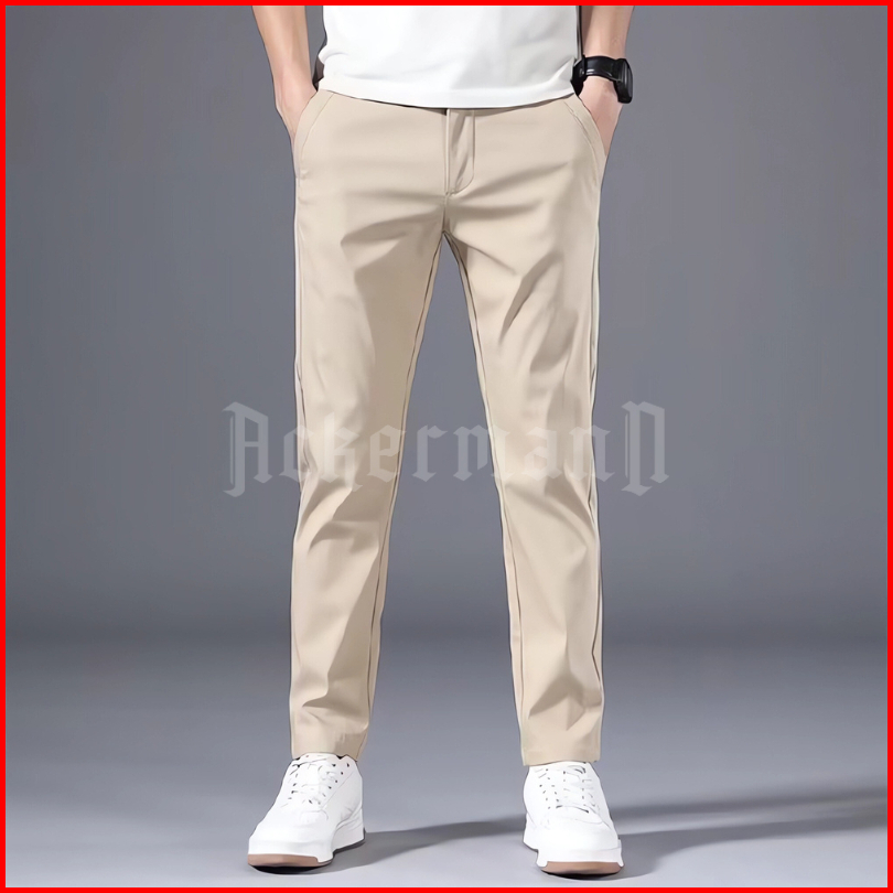 Ackermann - Chino Long Pants Cream Celana Panjang Pria Slimfit 100cm Katun Stretch Premium