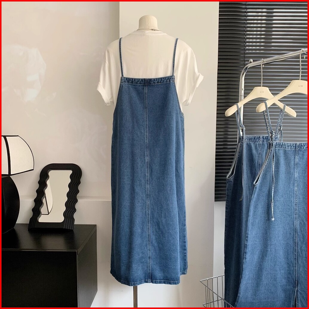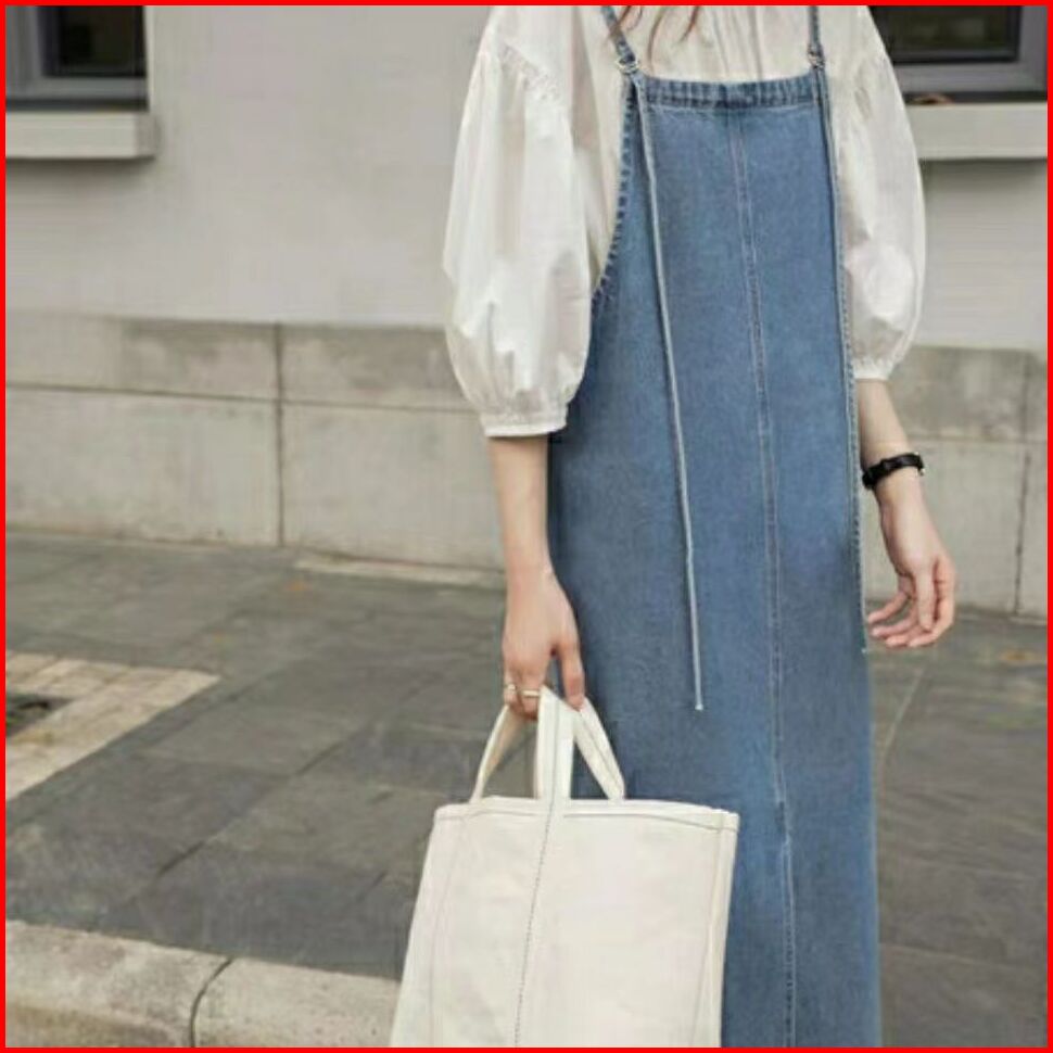 Overall Jeans Wanita Rose Korean Style Skirt Midi Long Rok Denim