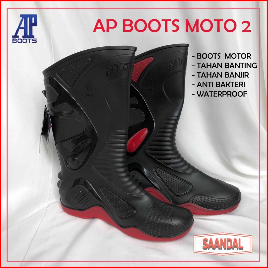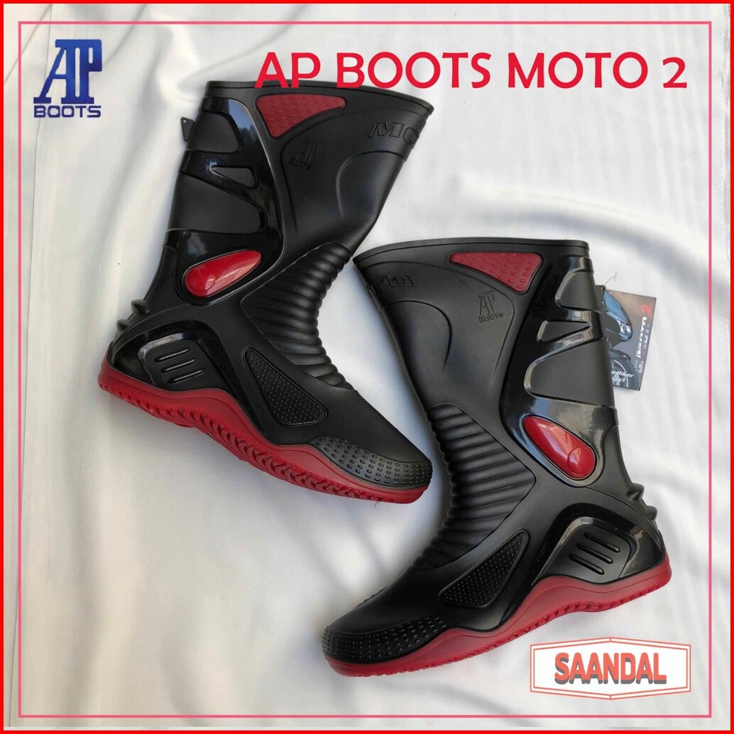Sepatu Boots Tinggi Hitam Pria Ap Boots Moto 2 Tahan Air Tahan Minyak