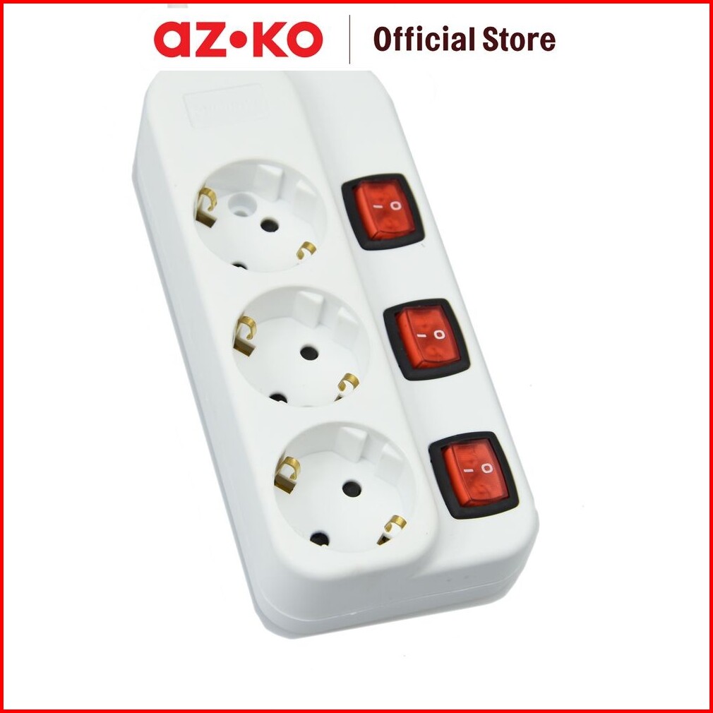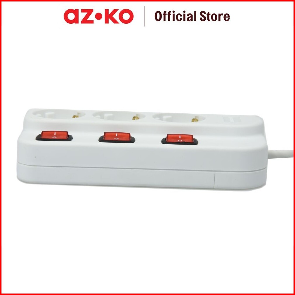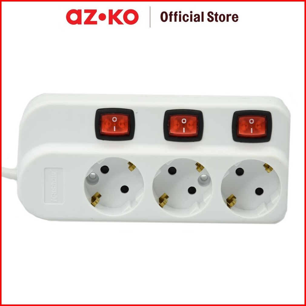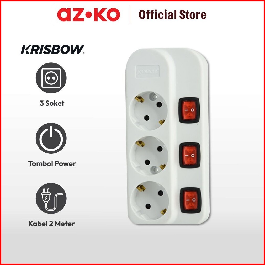 Azko Krisbow Stop Kontak 3 Socket Kr-4338 - Putih Electric Socket Terminal Colokan Listrik Peralatan Elektronik Extensio