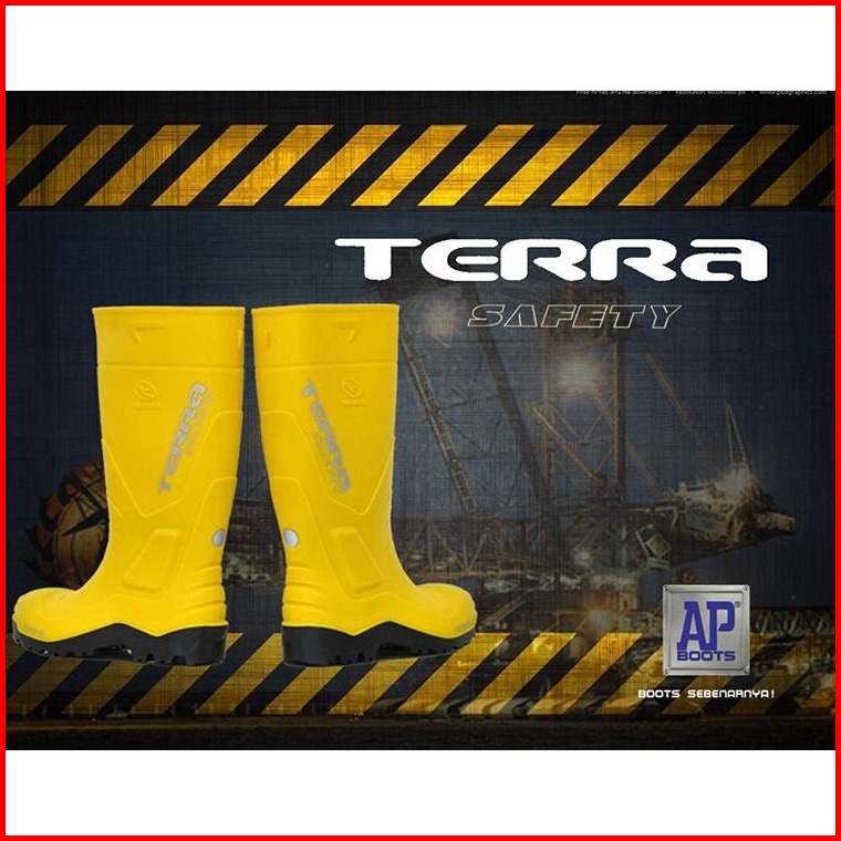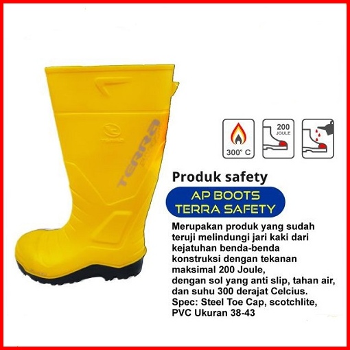 Ap Terra Safety S4 39-43 Yellow - Sepatu Boot Safety Karet - Ap Boots Toe Cap Besi - Ap Boots
