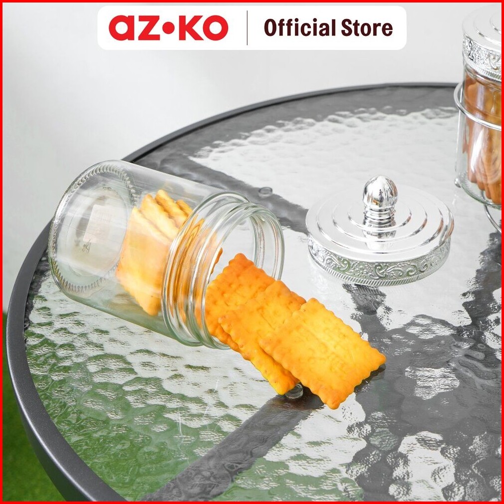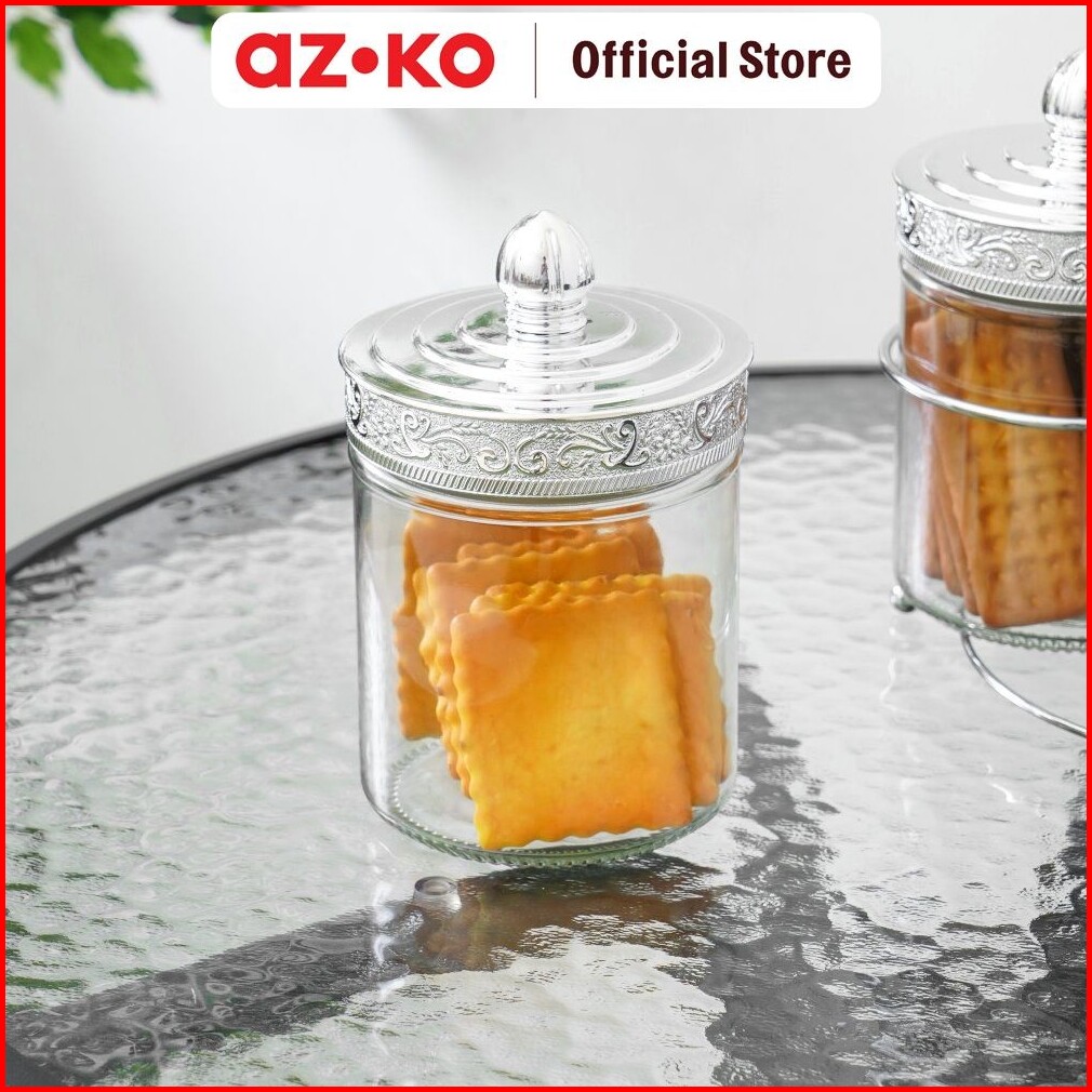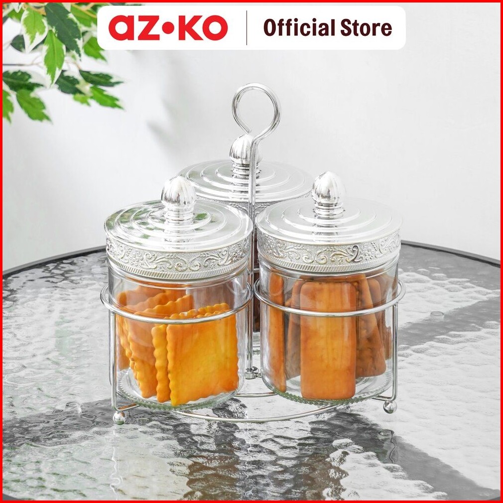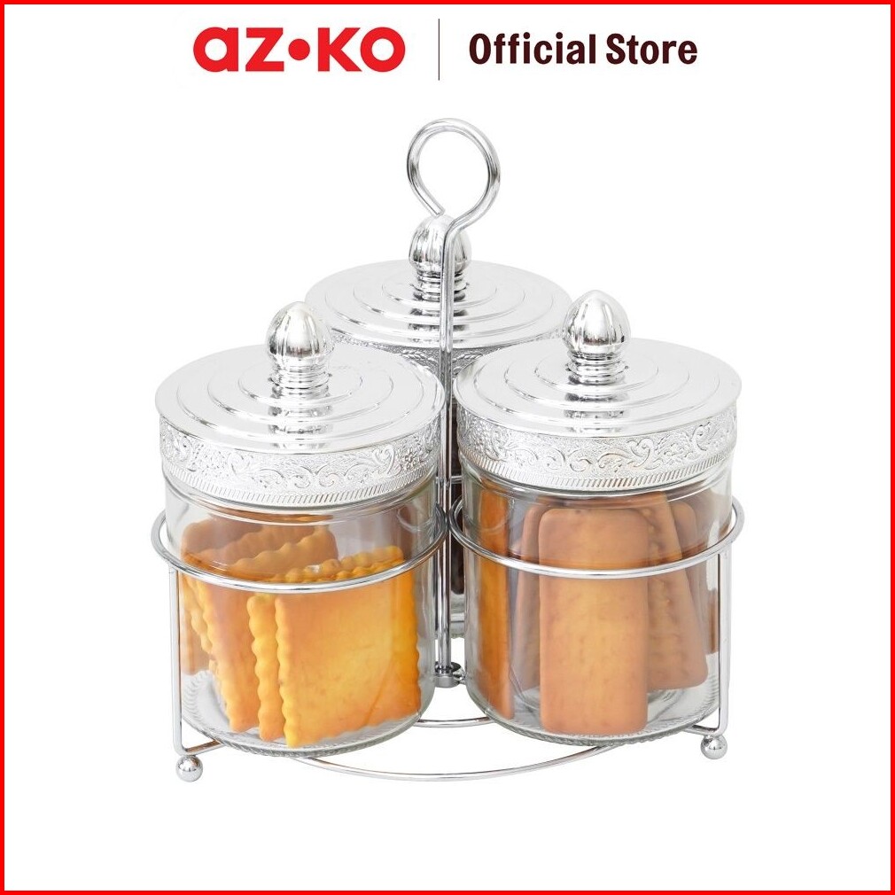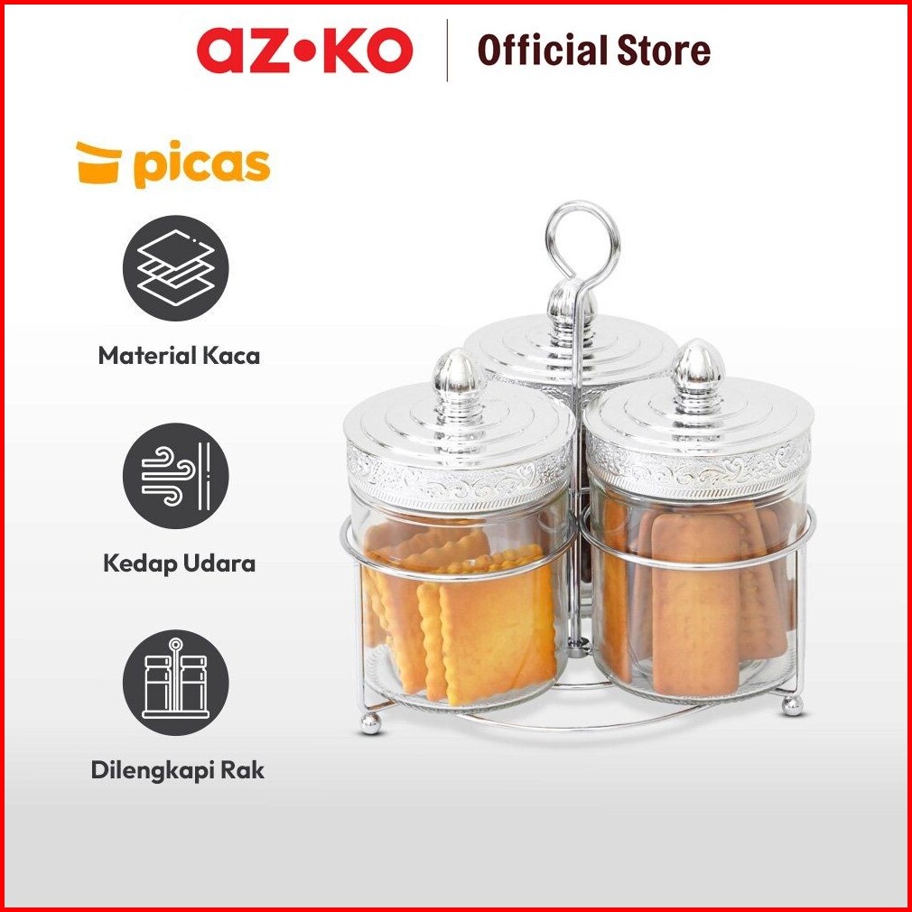Azko Picas Set 3 Pcs Stoples Kaca Dengan Rak - Silver Jar Tempat Simpan Snack Dan Permen Setoples Toples Beling Serbagun