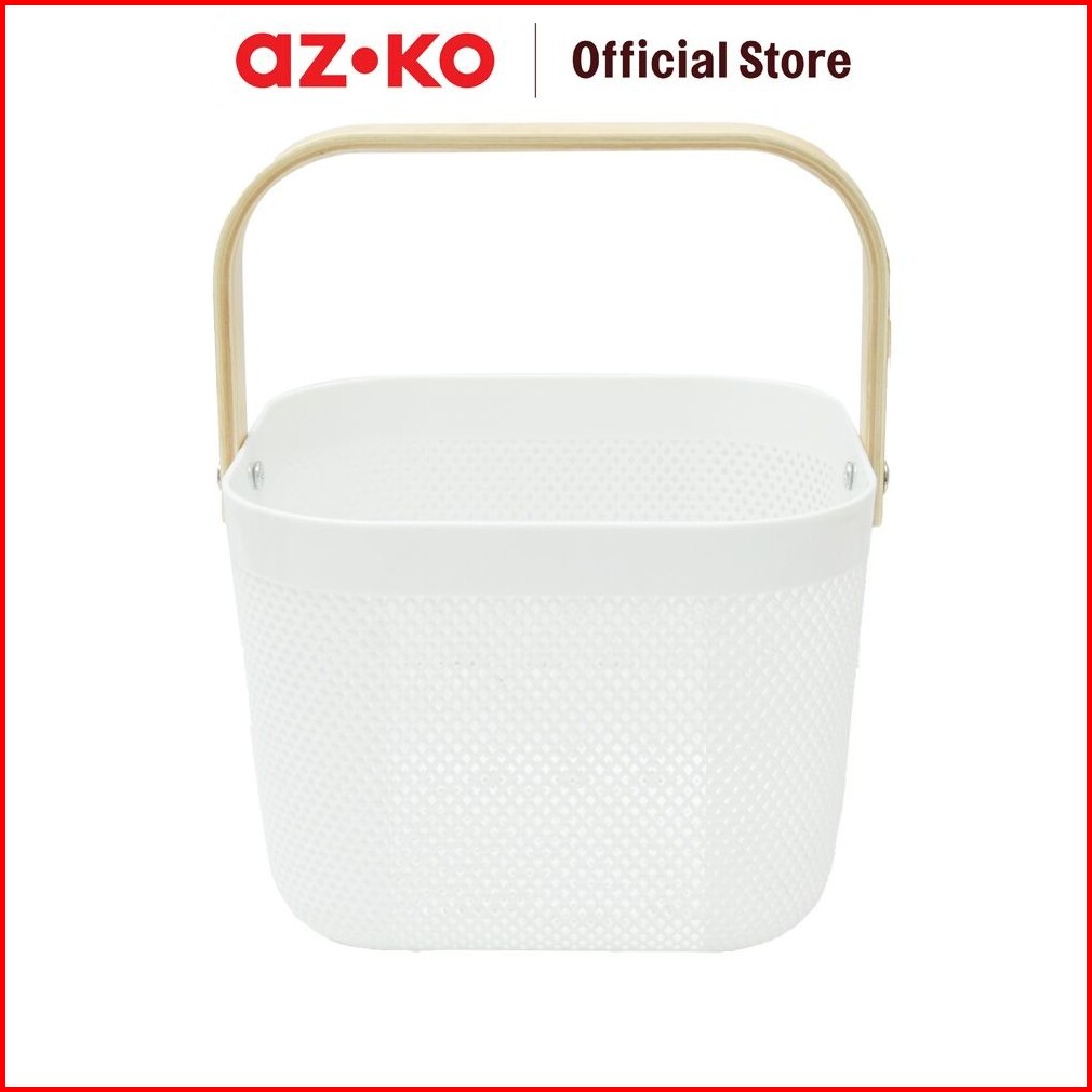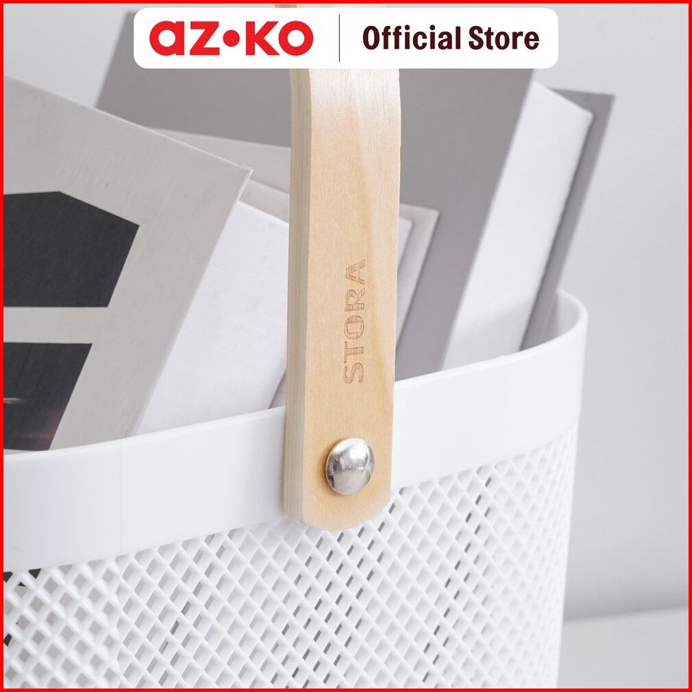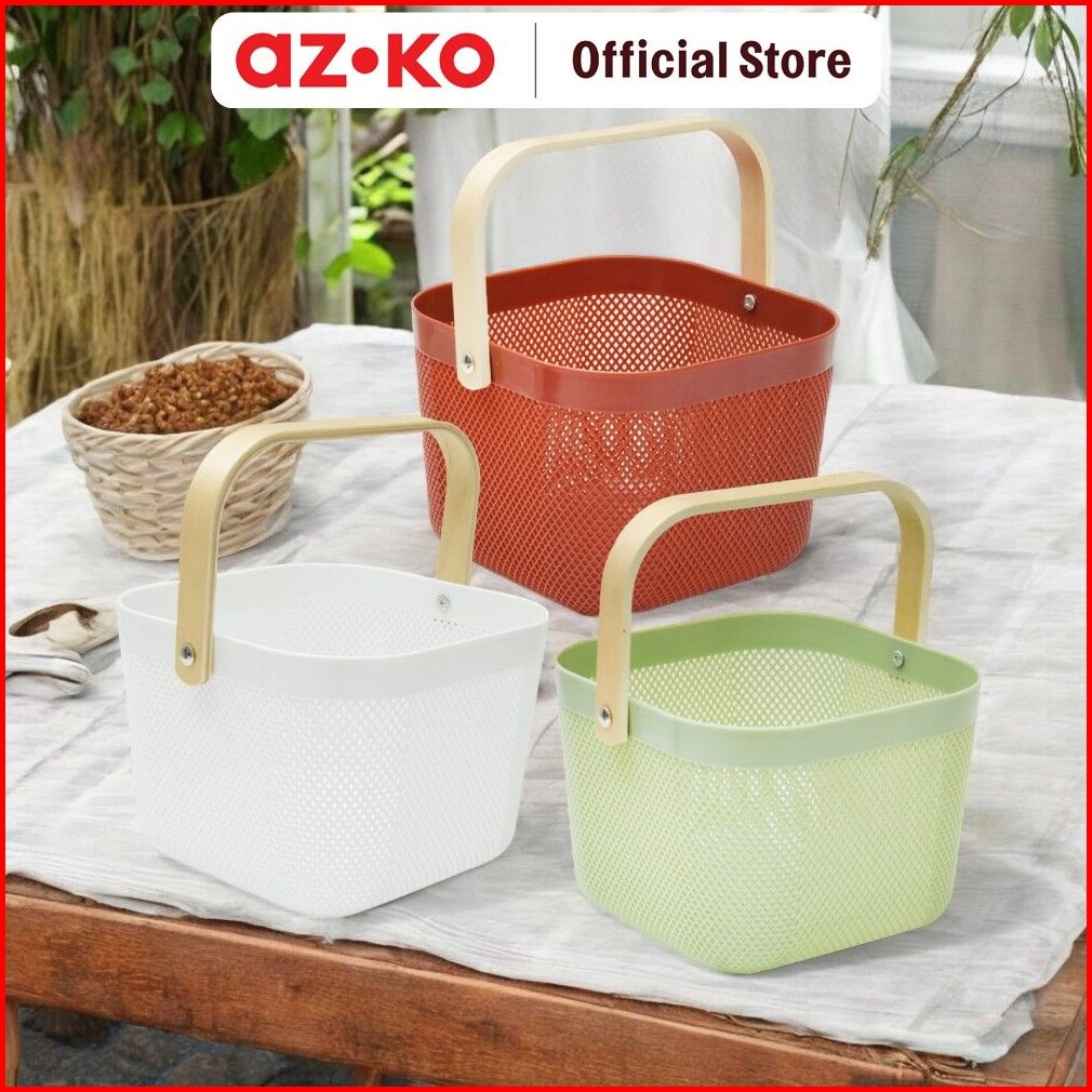 Azko Stora 25x25x30 Cm Keranjang Penyimpanan Handle Kayu Storage Basket Kotak Penyimpanan Serbaguna Bin Organizer Tempat