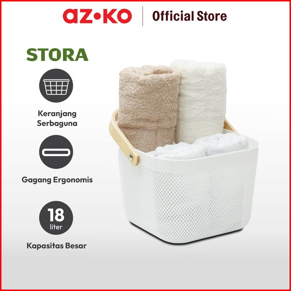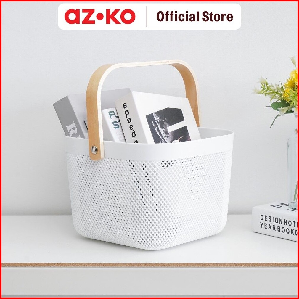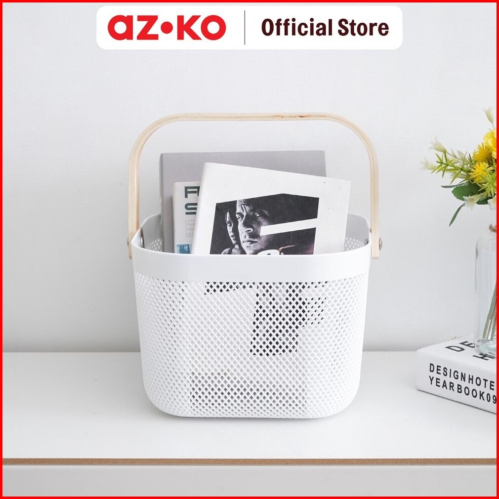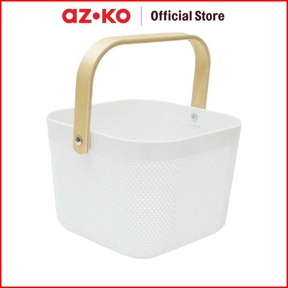 Azko Stora 25x25x30 Cm Keranjang Penyimpanan Handle Kayu Storage Basket Kotak Penyimpanan Serbaguna Bin Organizer Tempat