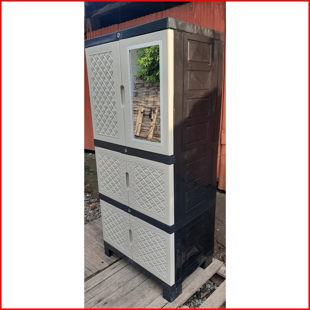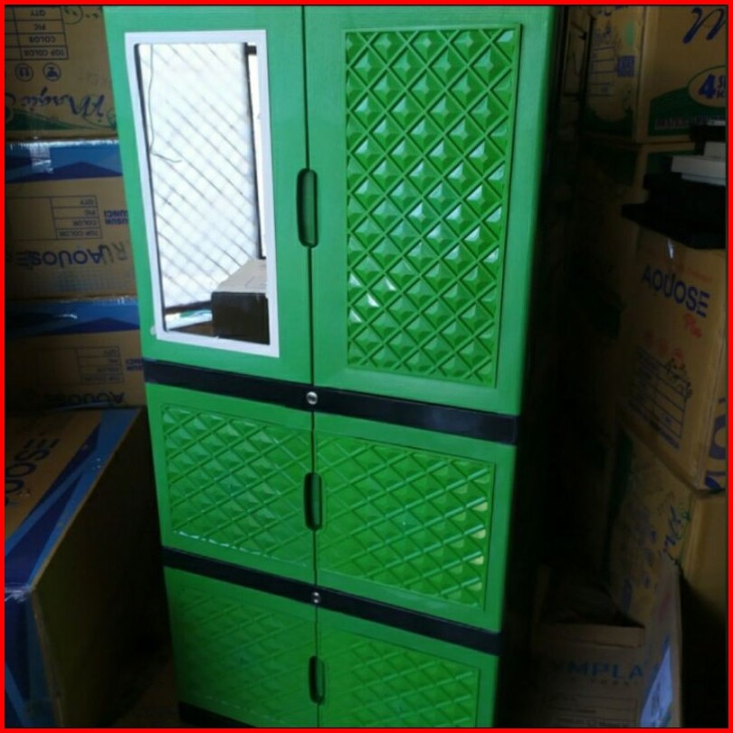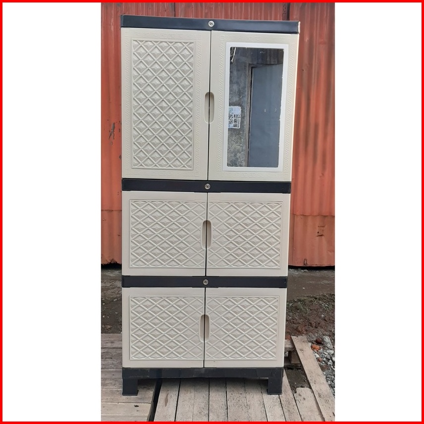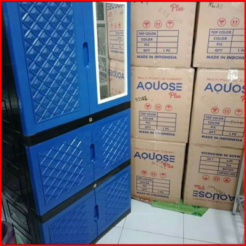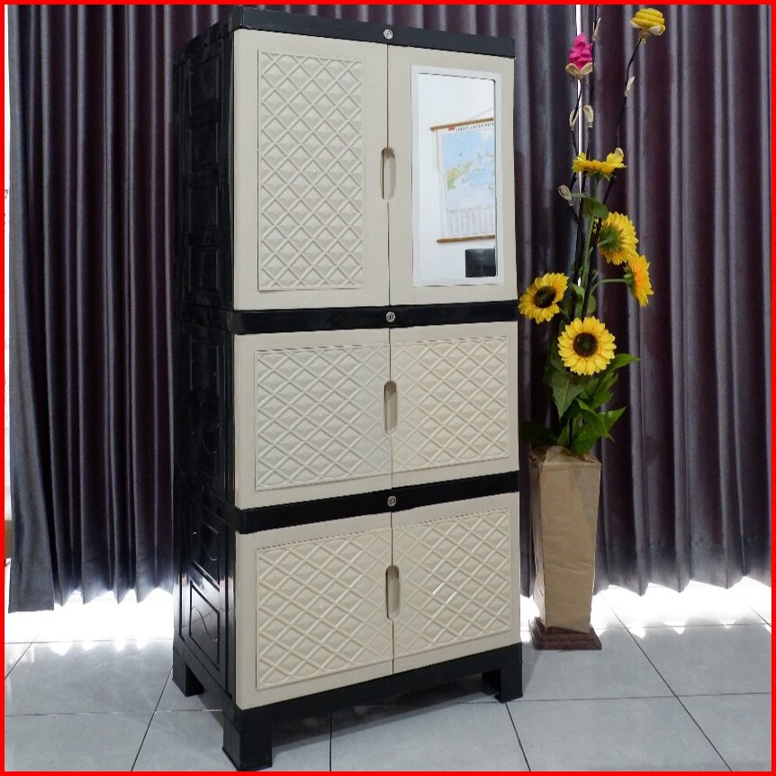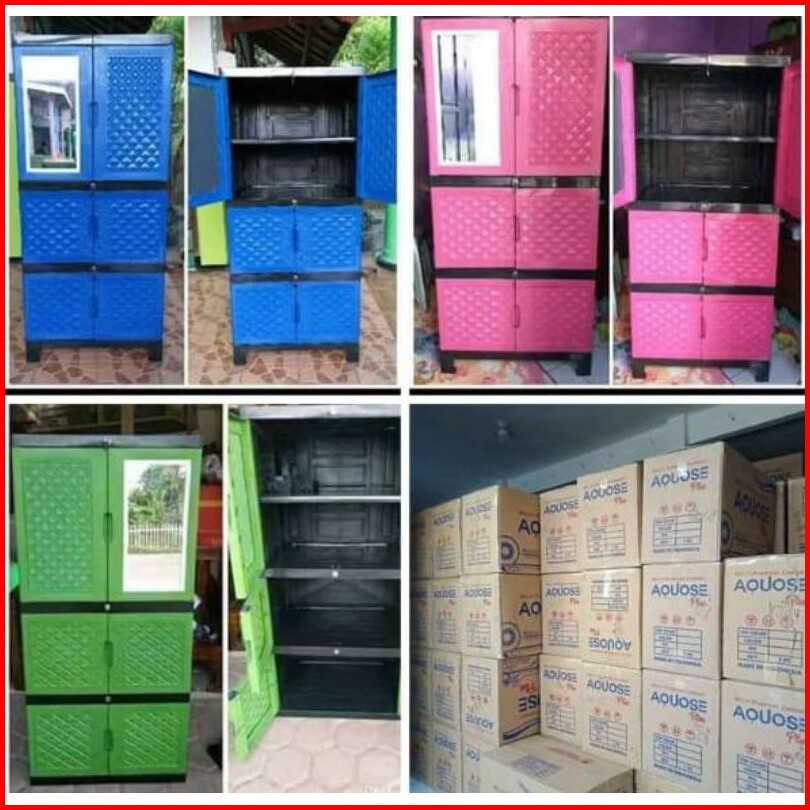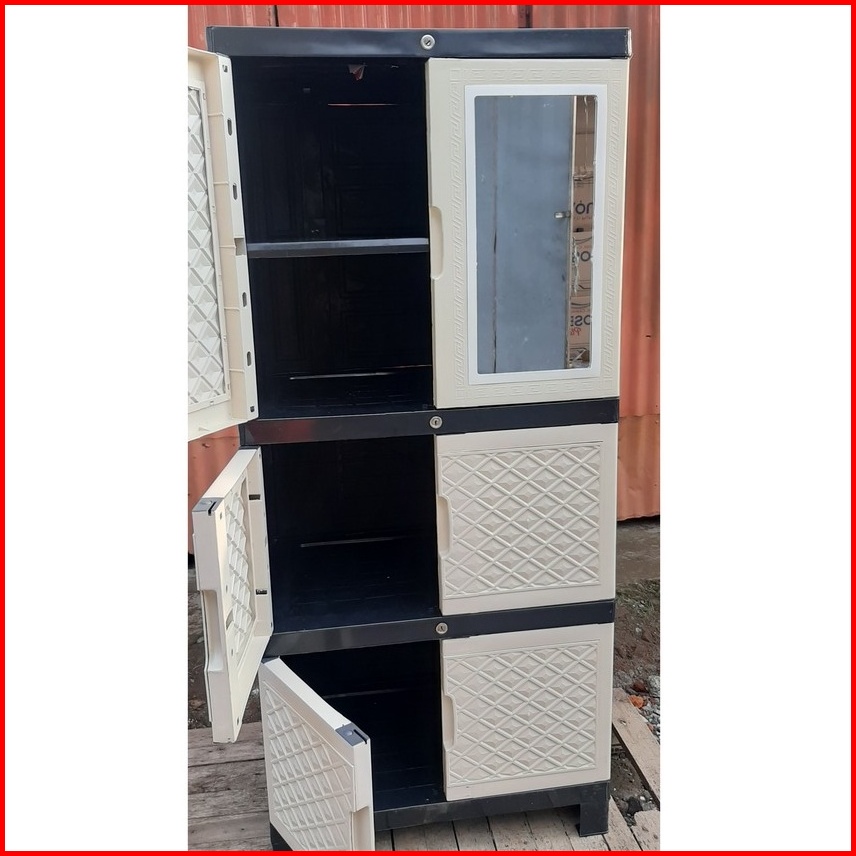 Lemari Plastik Aquose Jumbo Susun 4 Plus Cermin Kaca Full Kunci