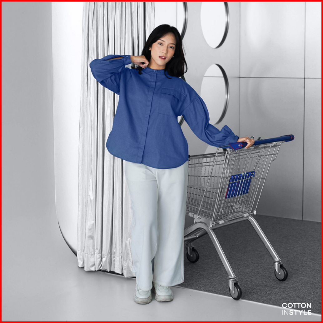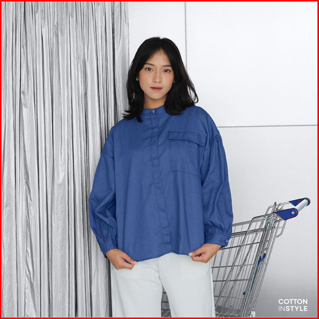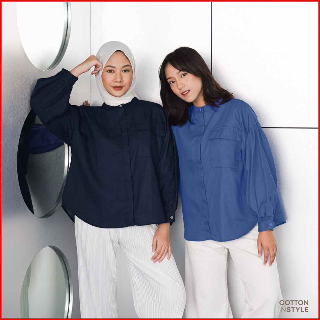 Cotton Instyle - Abila Kemeja Oversized Pakaian Wanita Atasan Kemeja Oversized Lengan Puff