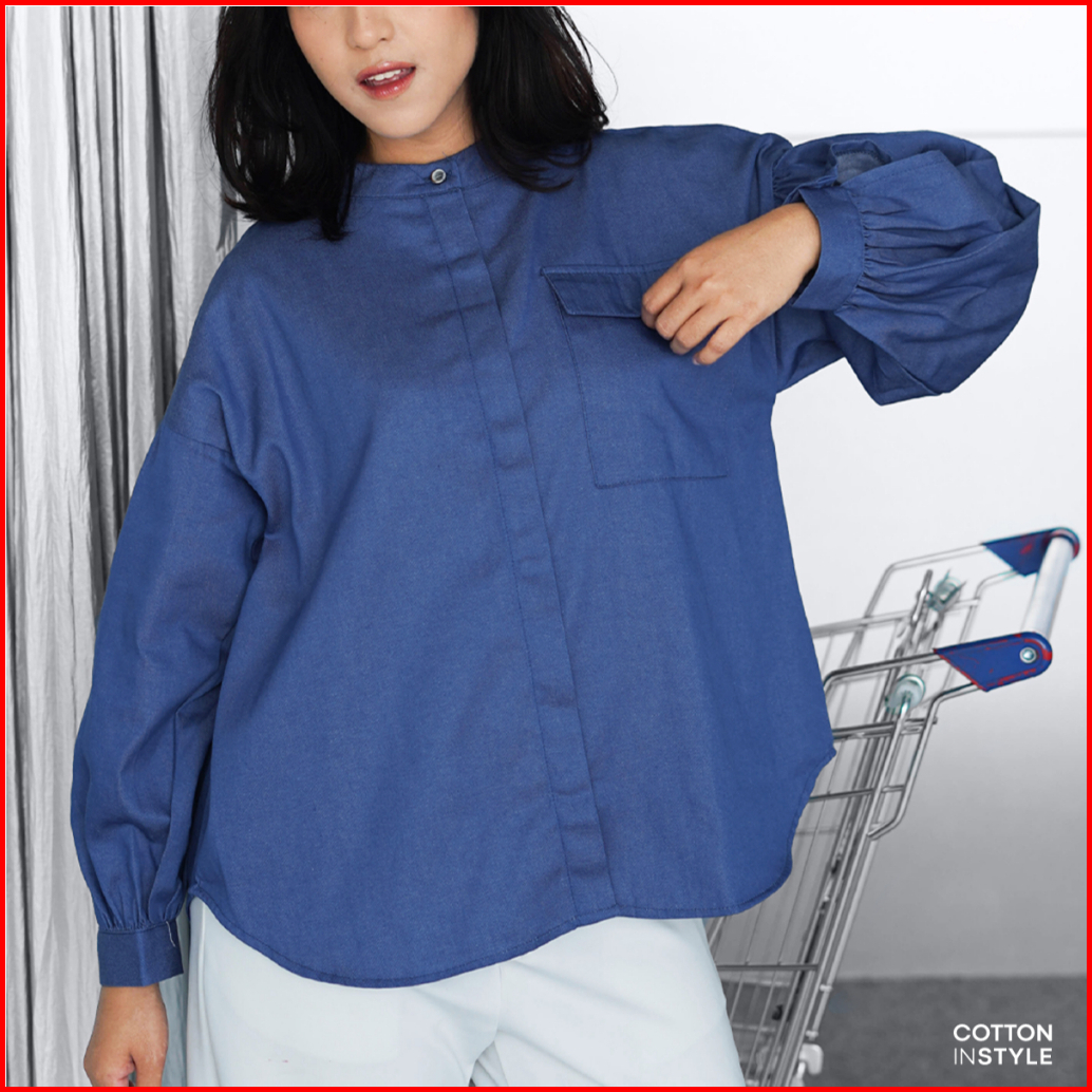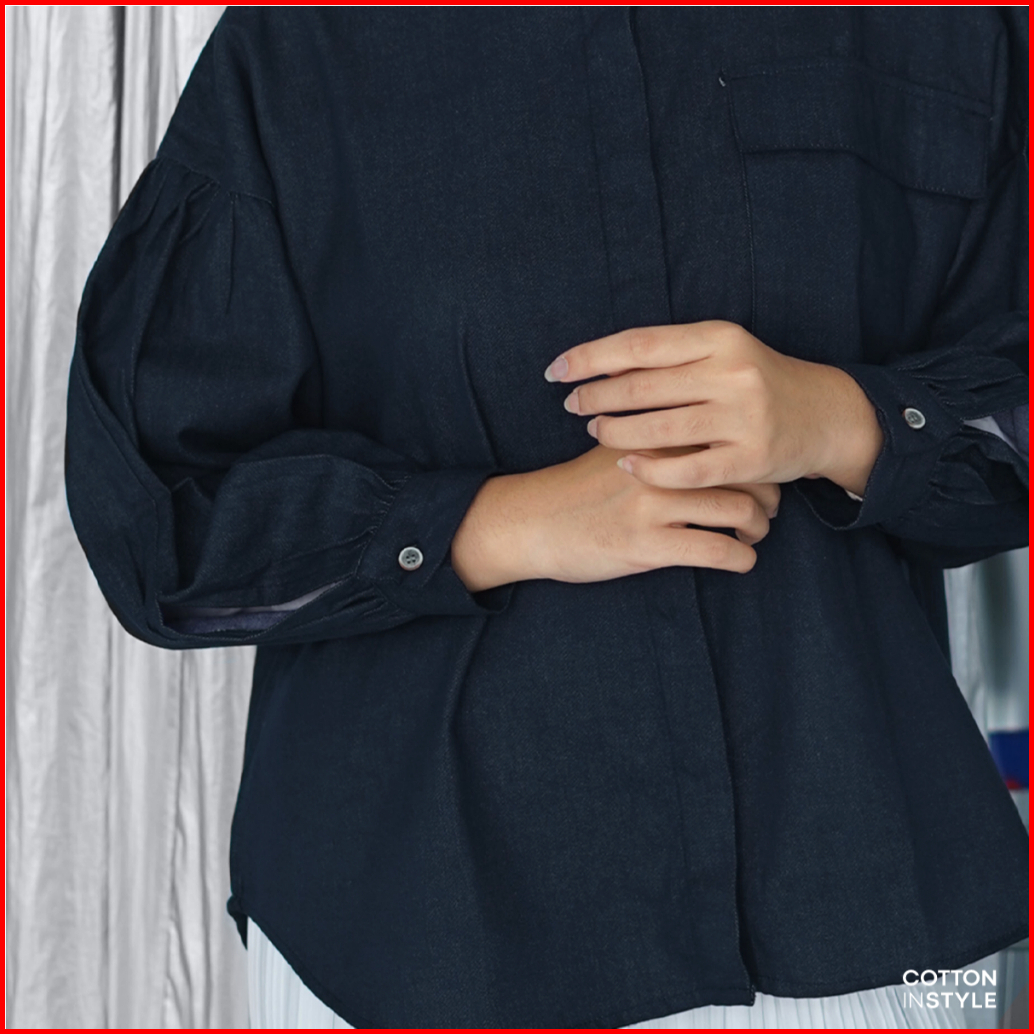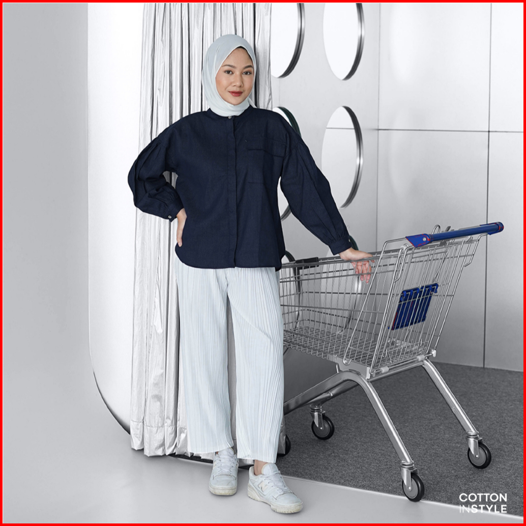 Cotton Instyle - Abila Kemeja Oversized Pakaian Wanita Atasan Kemeja Oversized Lengan Puff