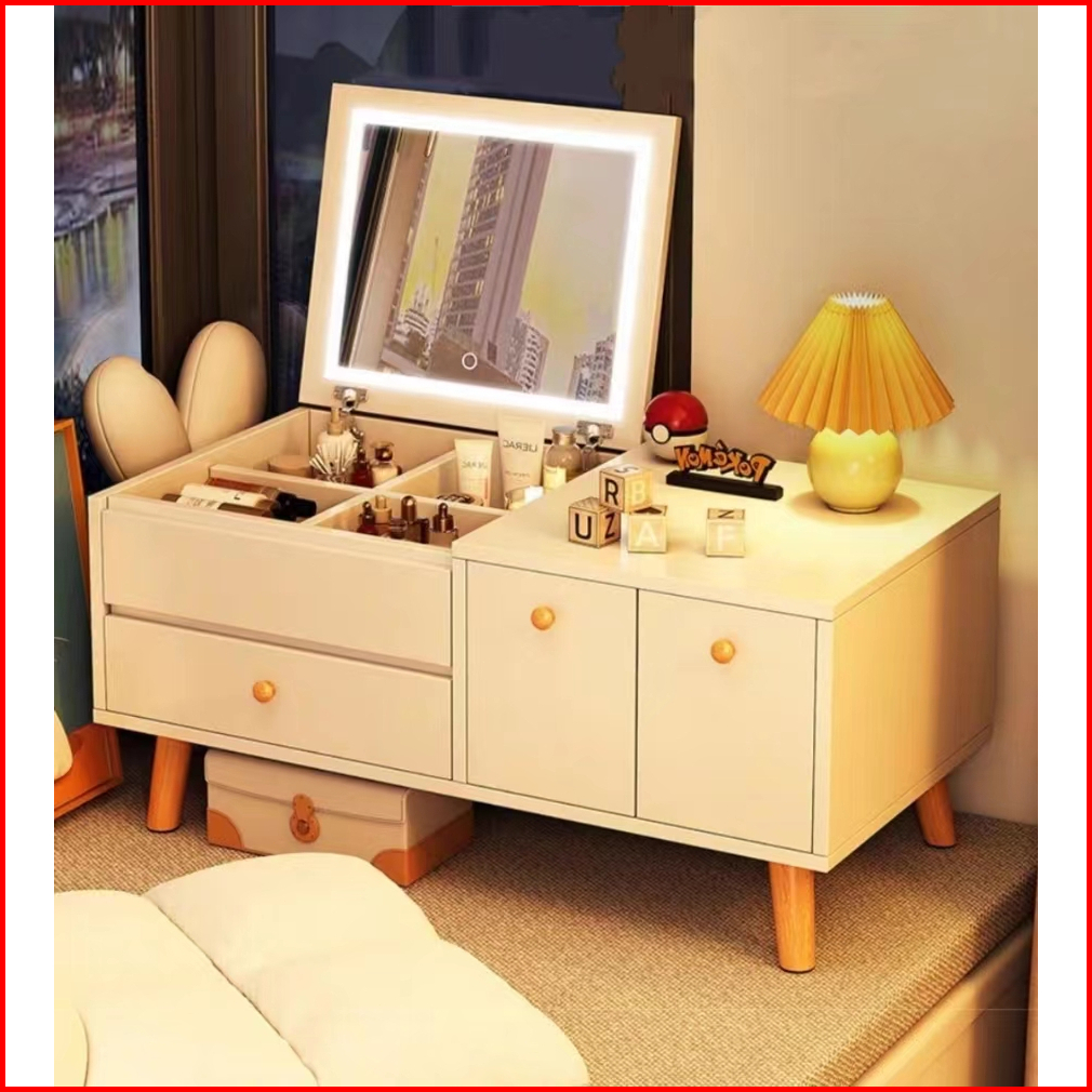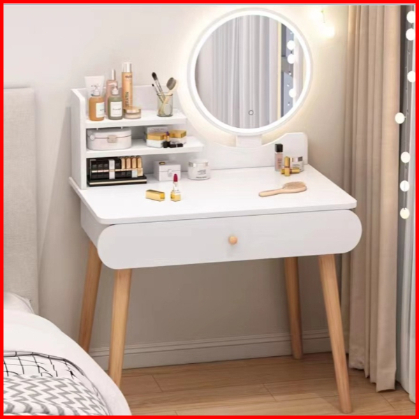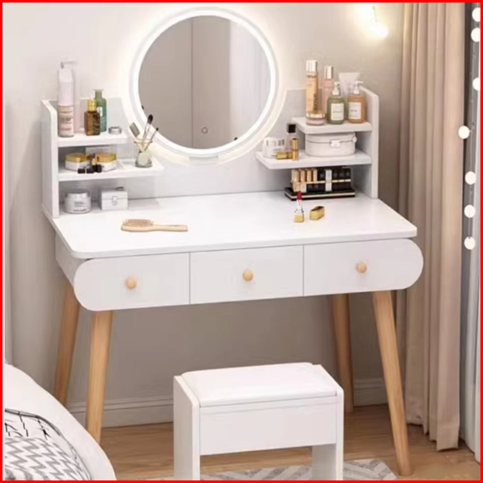 Highline Meja Rias Lampu Led Meja Rias Rak Kosmetik Meja Rias Aesthetic Mini Modern Meja Kosmetik