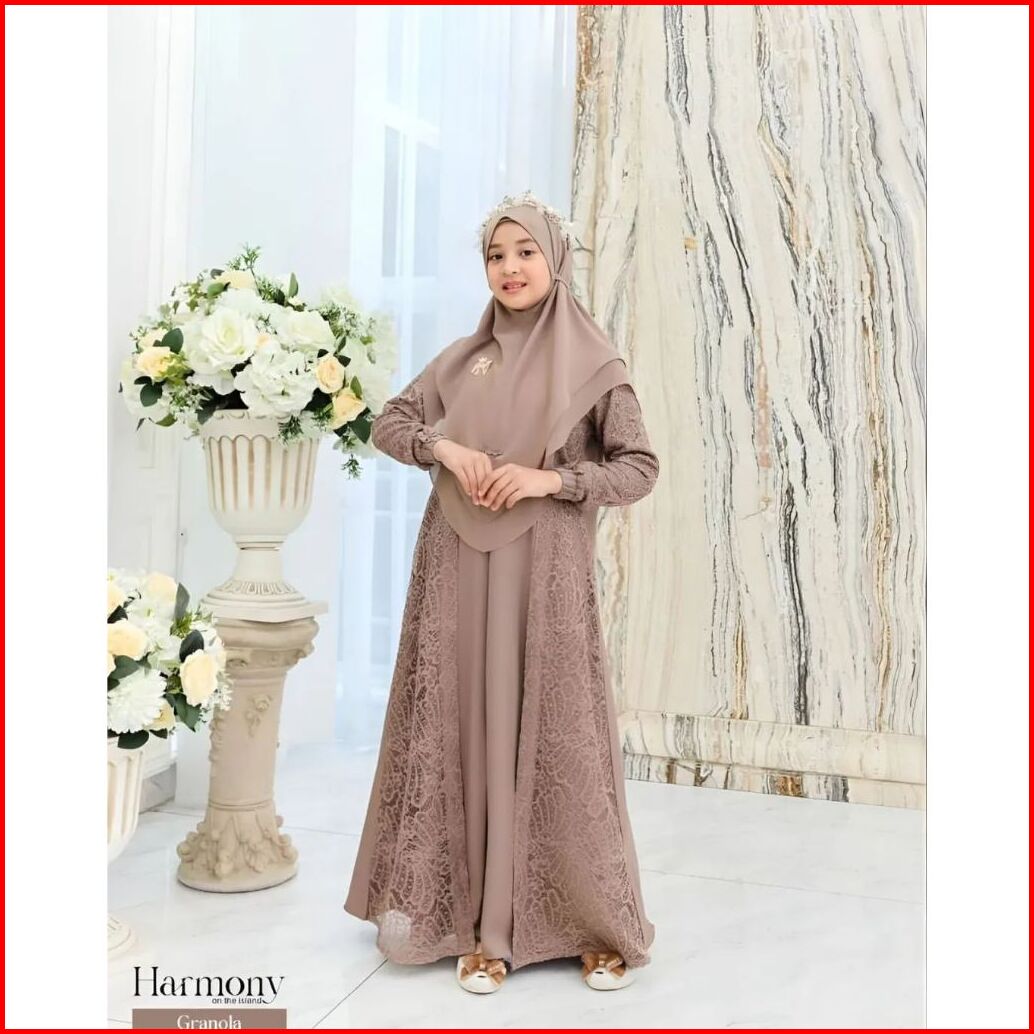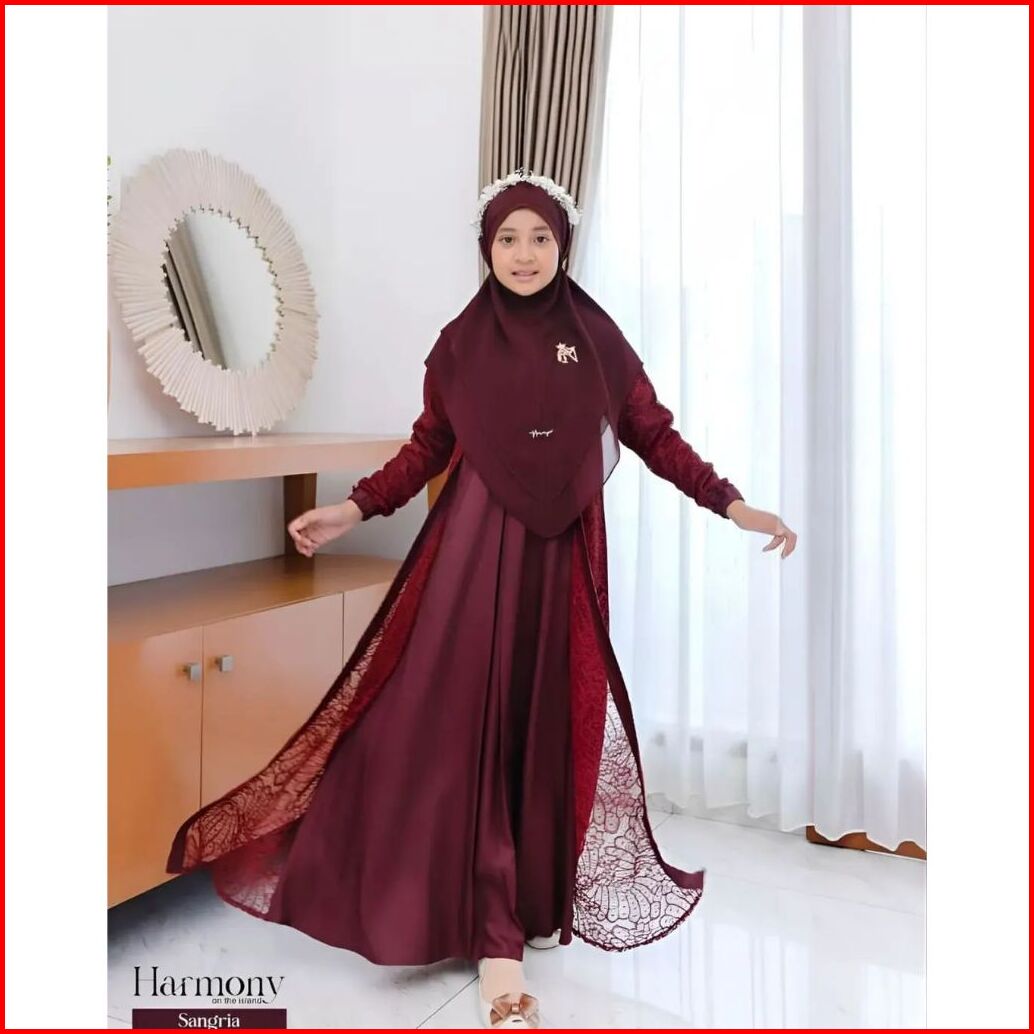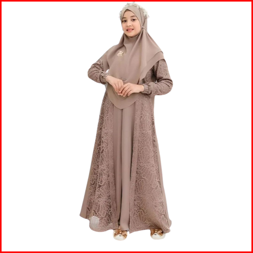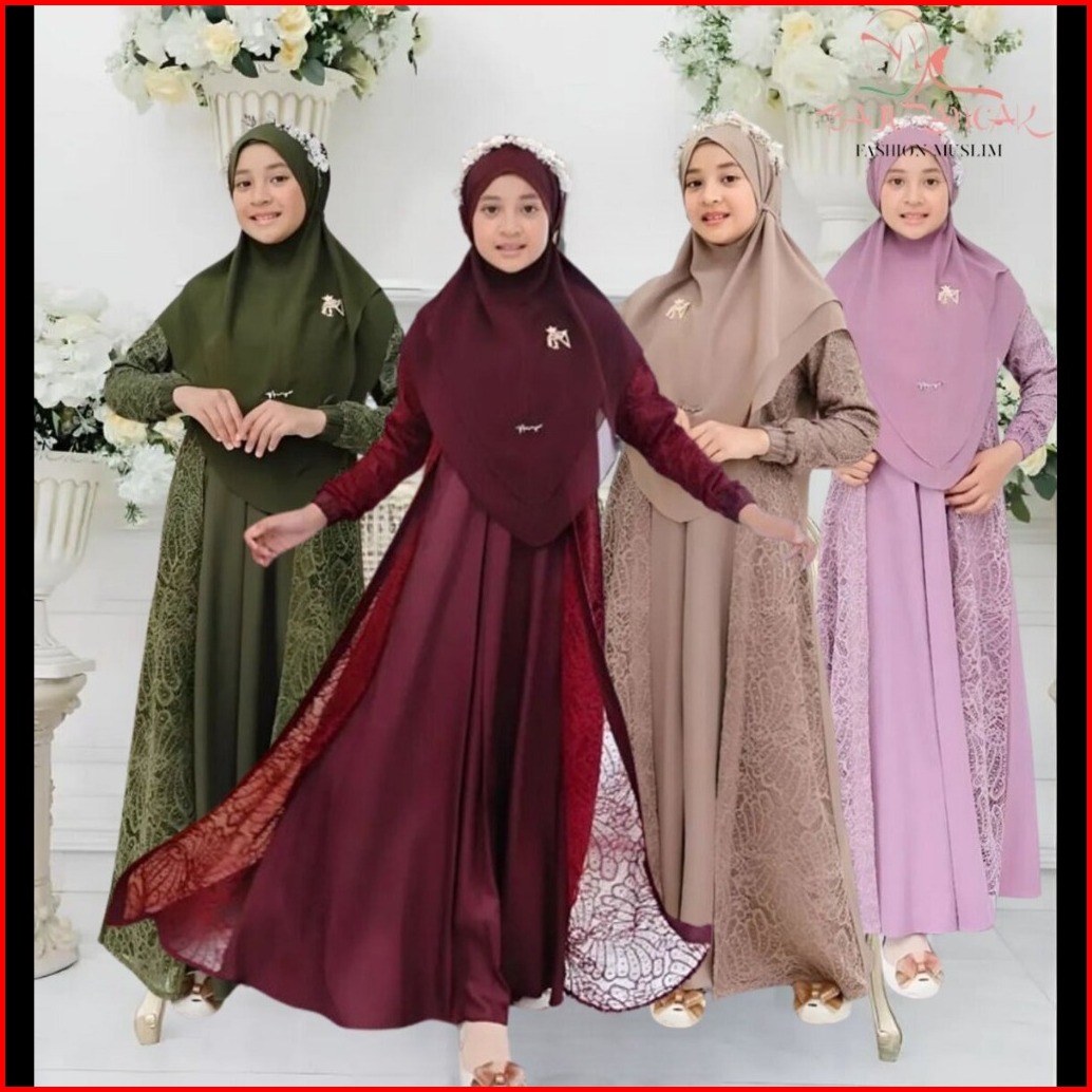 Baju Gamis Anak Tanggung Terbaru 2025 Gamis Brukat Set Hijab Anak Perempuan Usia 12 14 Tahun Premium