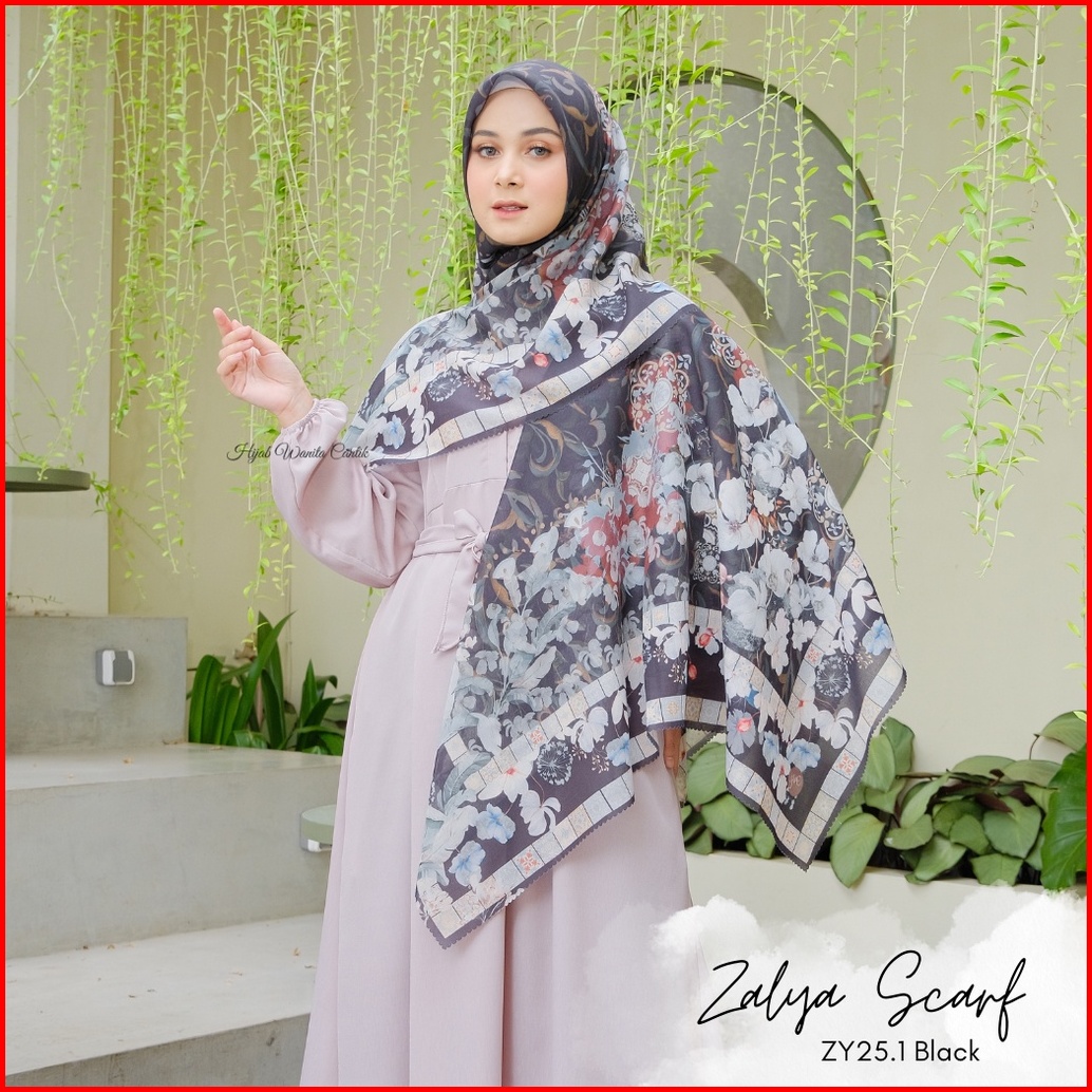 Hira - Hijabwanitacantik - Segiempat Zalya Scarf Bahan Icy Voal Hijab Segi Empat Printing Jilbab Motif