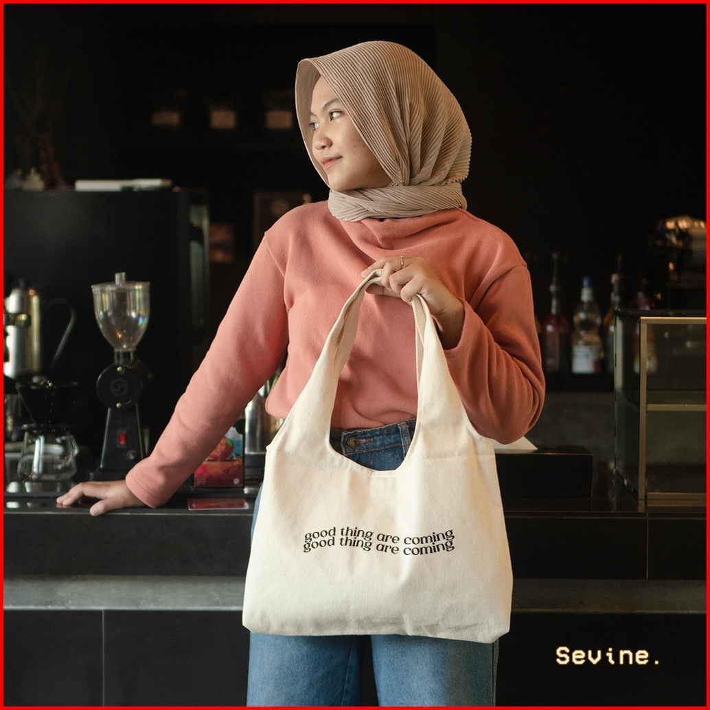 Sevine Tote Bag Kanvas Bonnie Tas Wanita Sekolah Cewek Kuliah Laptop Totebag Korea Aesthetic - Ctw