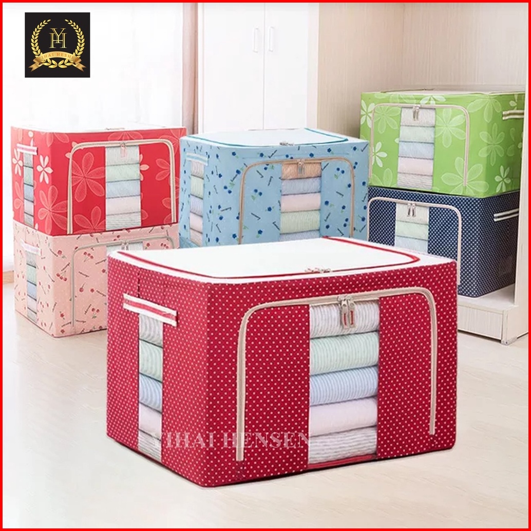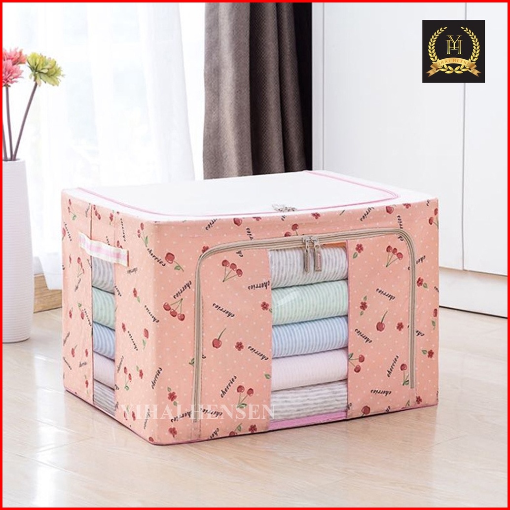 Y H Storage Box 66l Multifungsi Frame Baja Double Zipper Large Lemari Pakaian Kotak Baju - Yh242