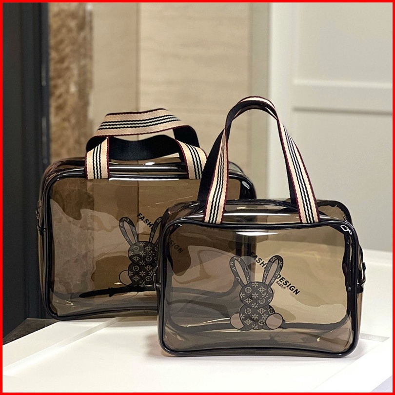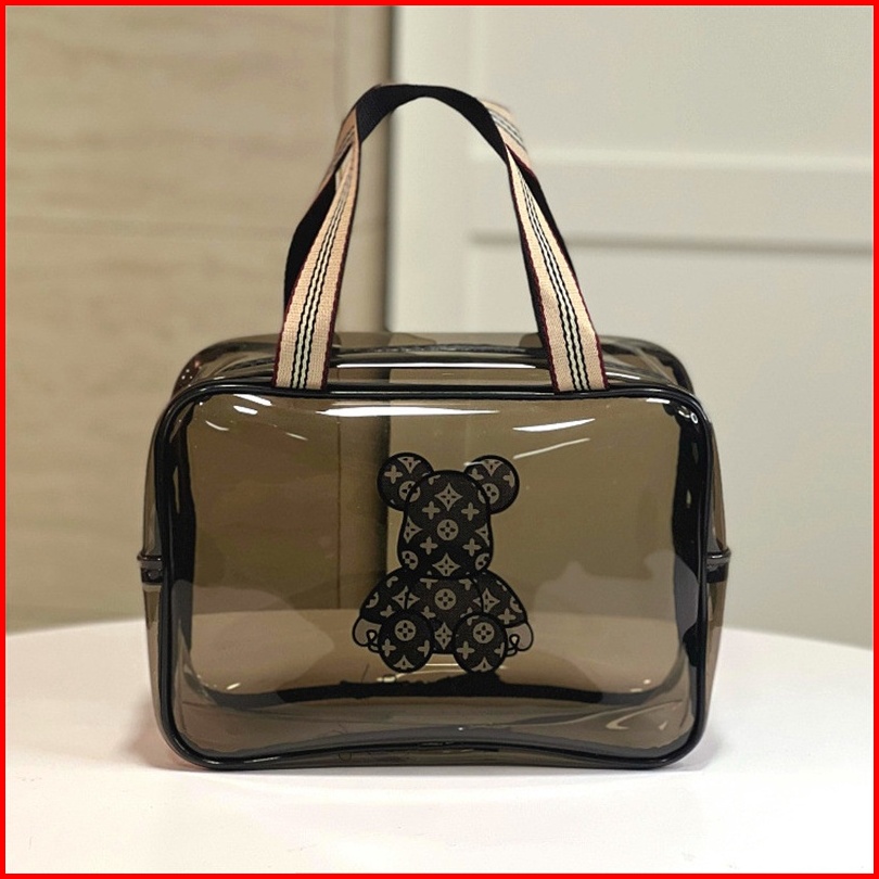 Tas Skincare Kosmetik Wanita Tranparan Coklat Ukuran Besar Jumbo Large Motif Lv