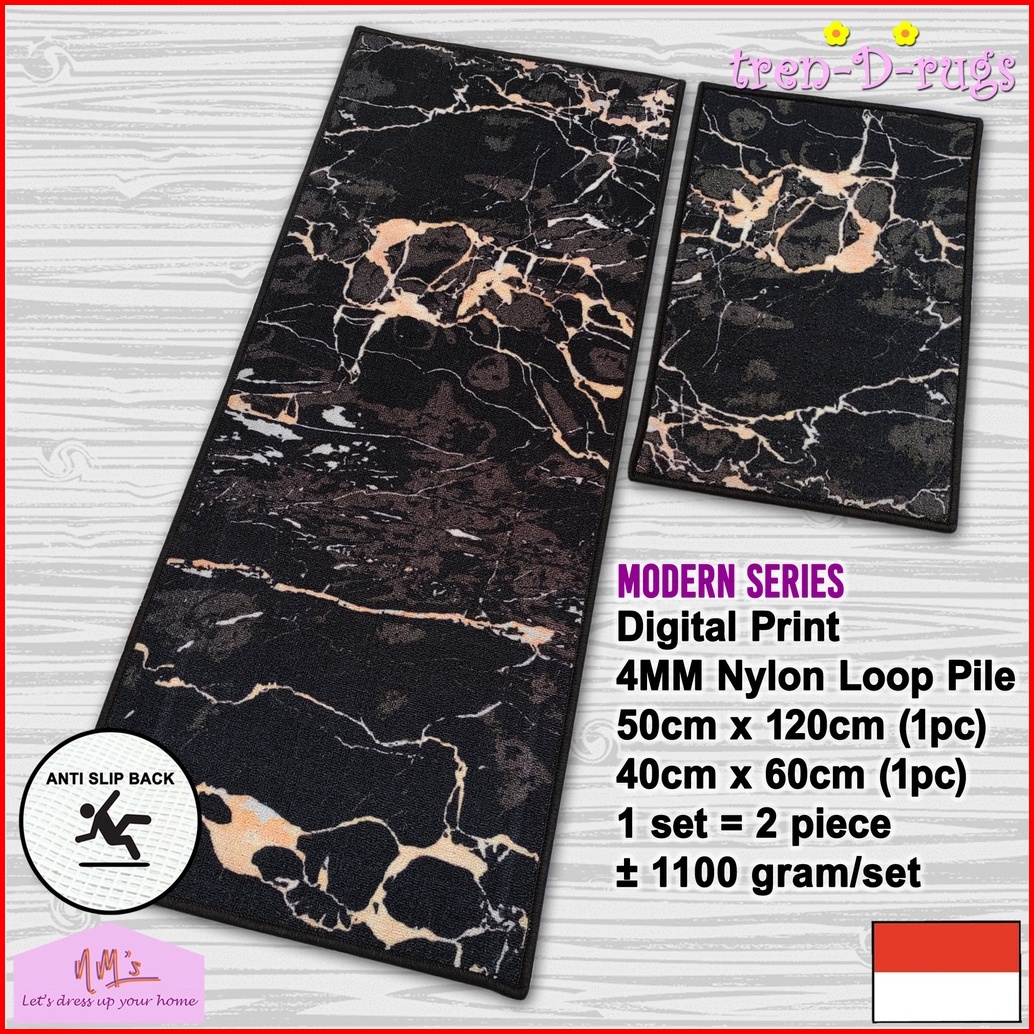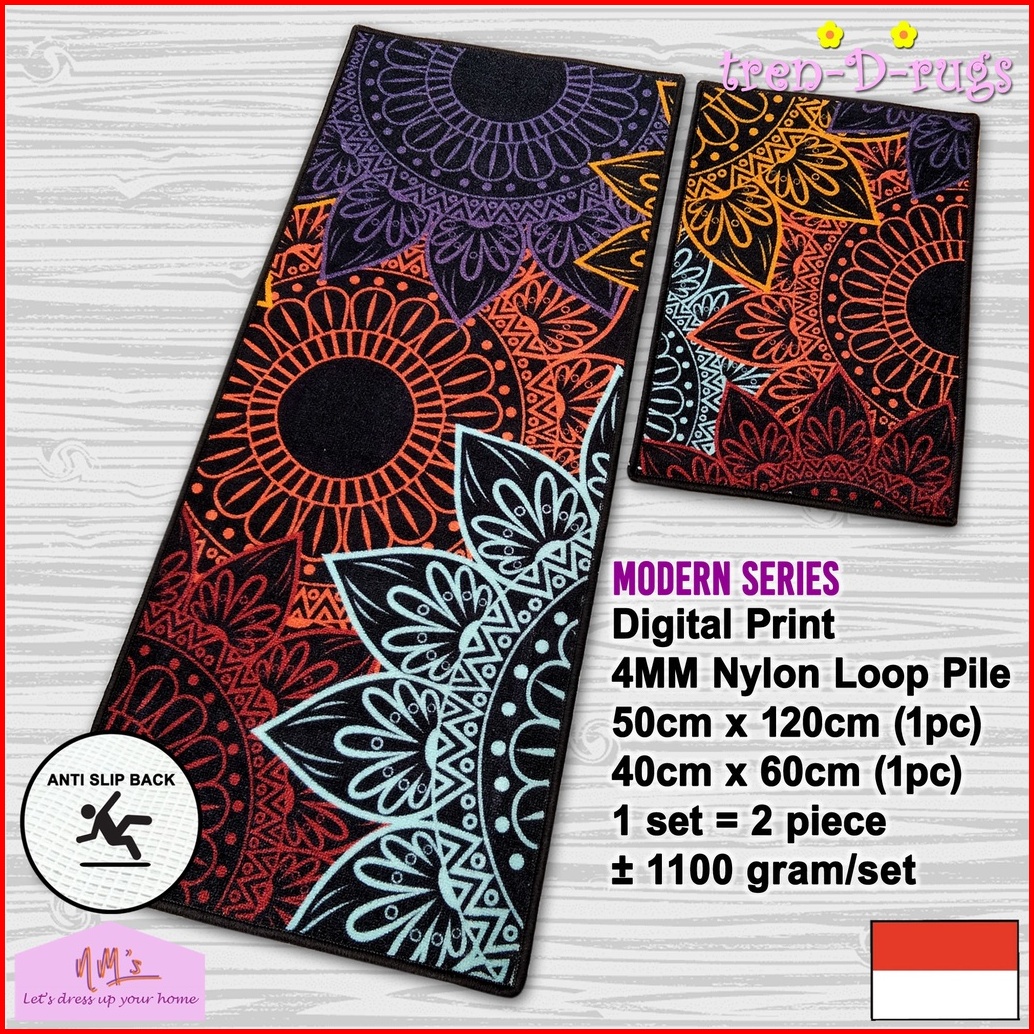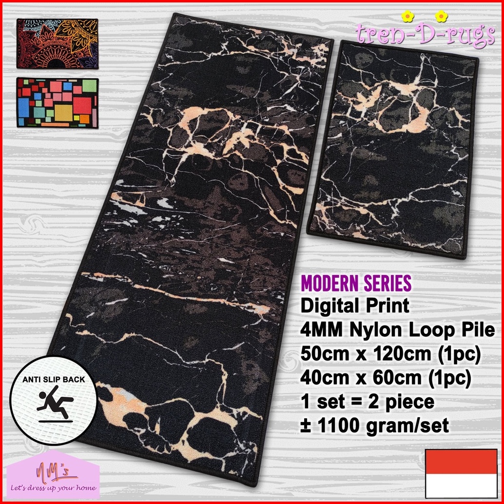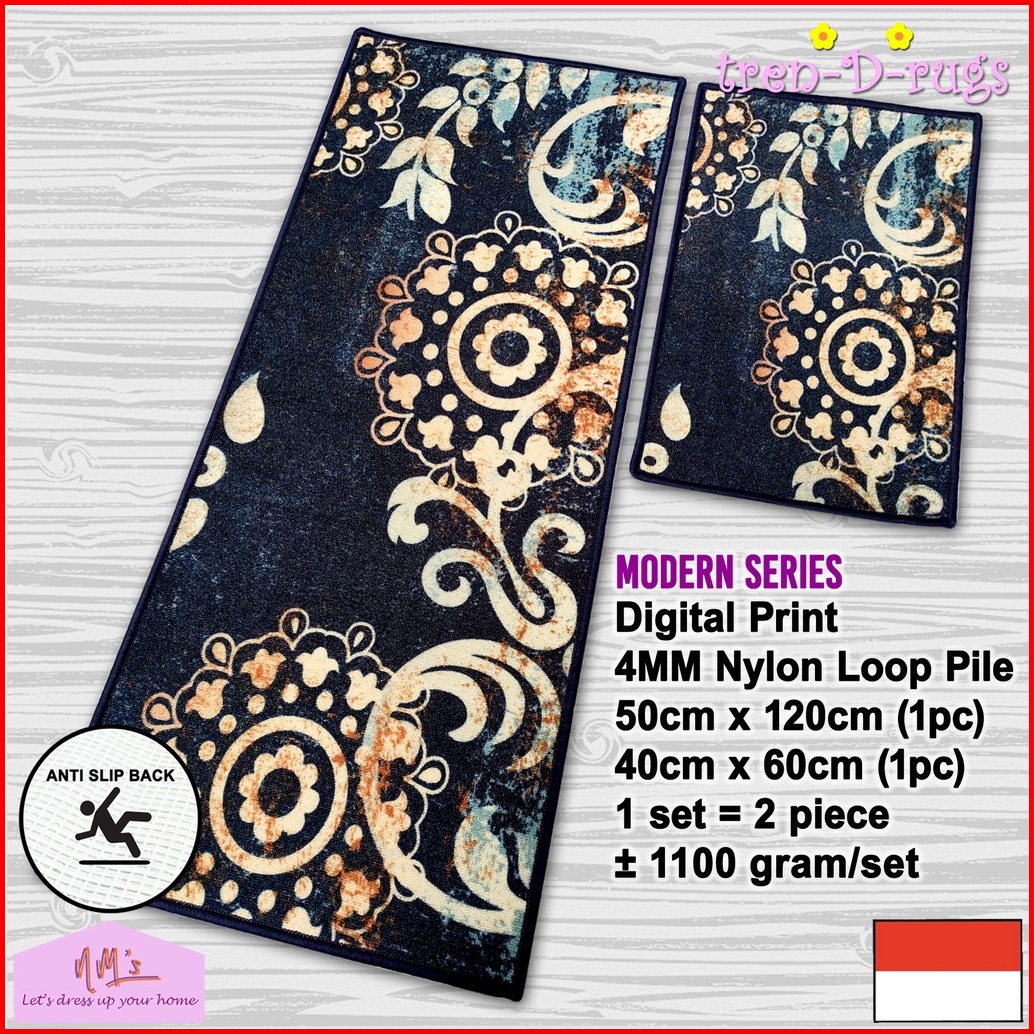 Tren-d-rugs Keset Kaki Digital Print Dapur Panjang Lorong Anti Slip Bulu Kitchen Mat 1 Set 2pcs-nms
