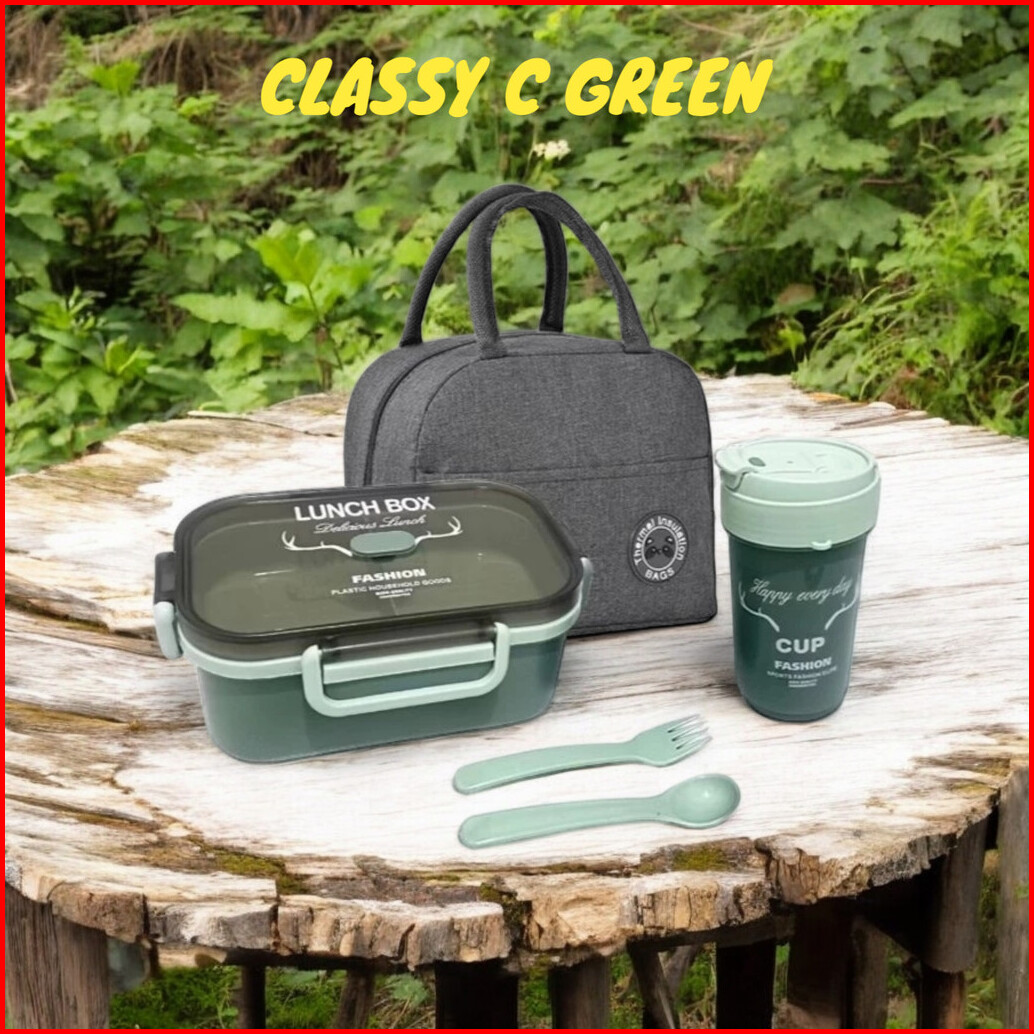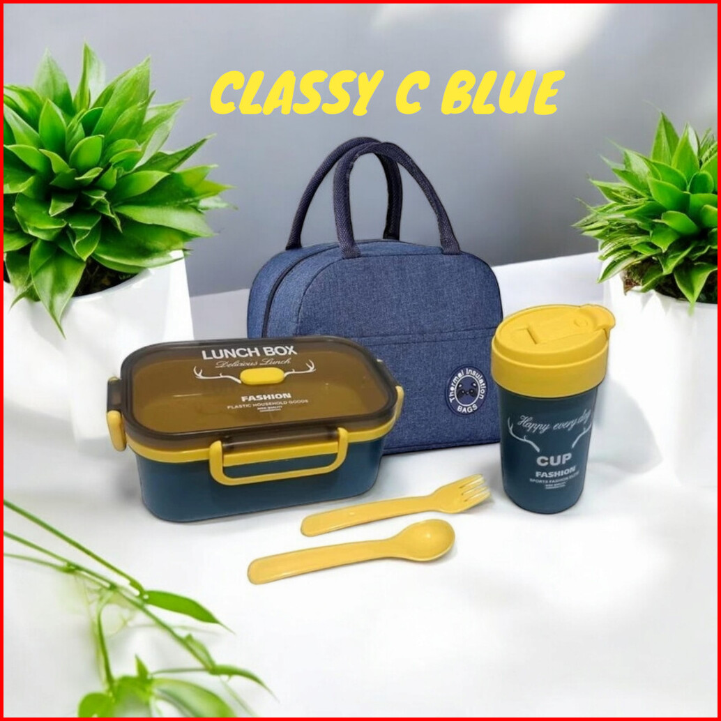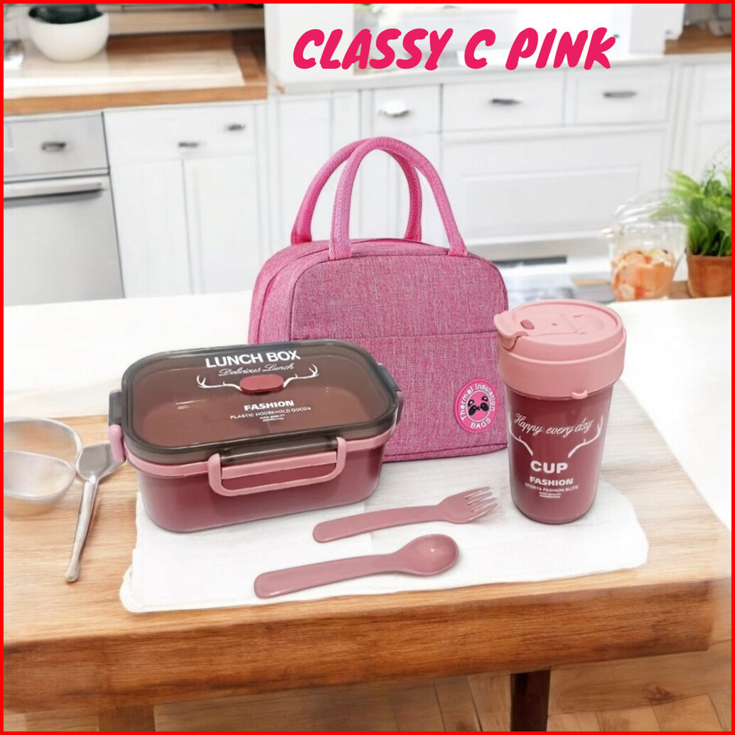 Classy C Lunch Box Set Kotak Makan Botol Minum Sendok Garpu Tas Bekal