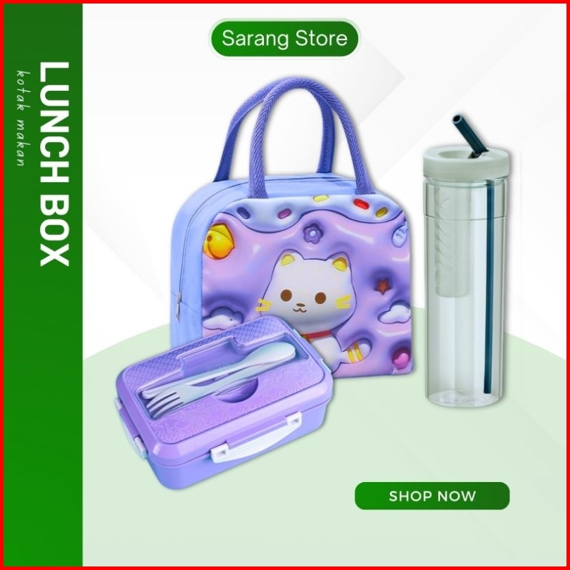 Lunch Box Set Botol Minum Sedotan Tas Karakter Kotak Bekal Anak Sekolah Tk Sd Perempuan Laki Laki
