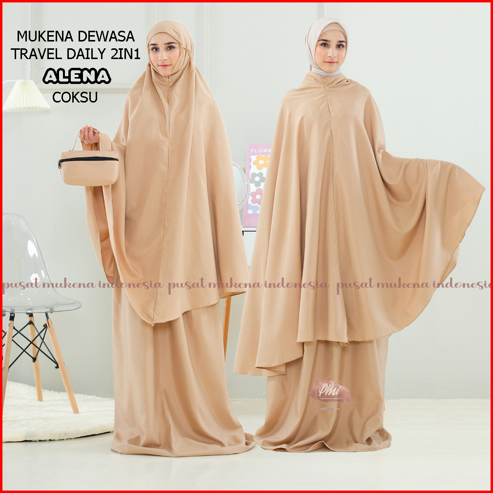 Pusat Mukena Indonesia-mukena Travel Daily Katun Polos 2in1 Alena