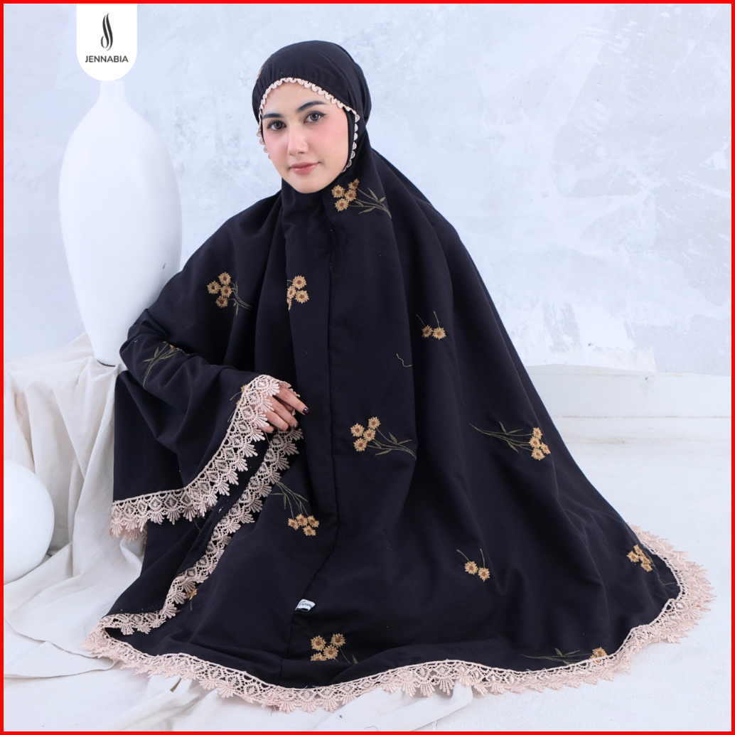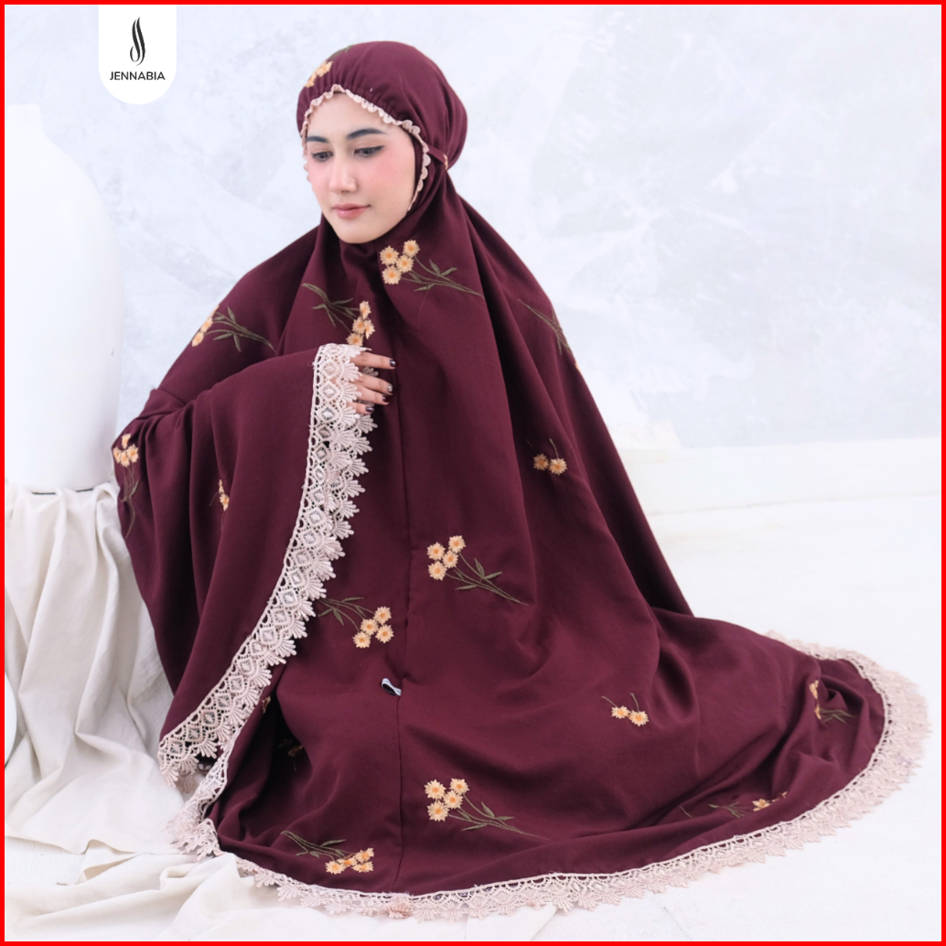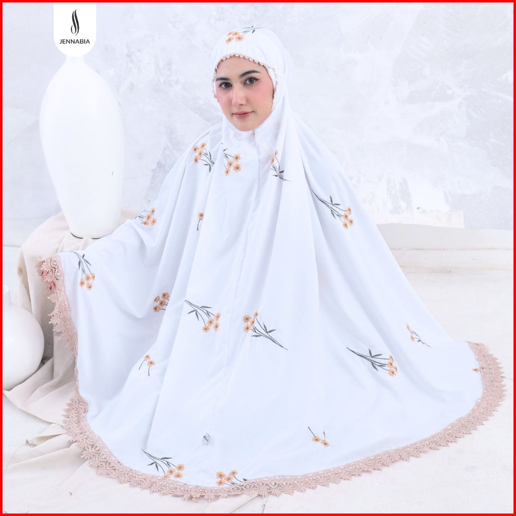 Jennabia - Mukena Katun Premium Bordir Bunga Sunflower Lembut Adem Nyaman Tas Dewasa