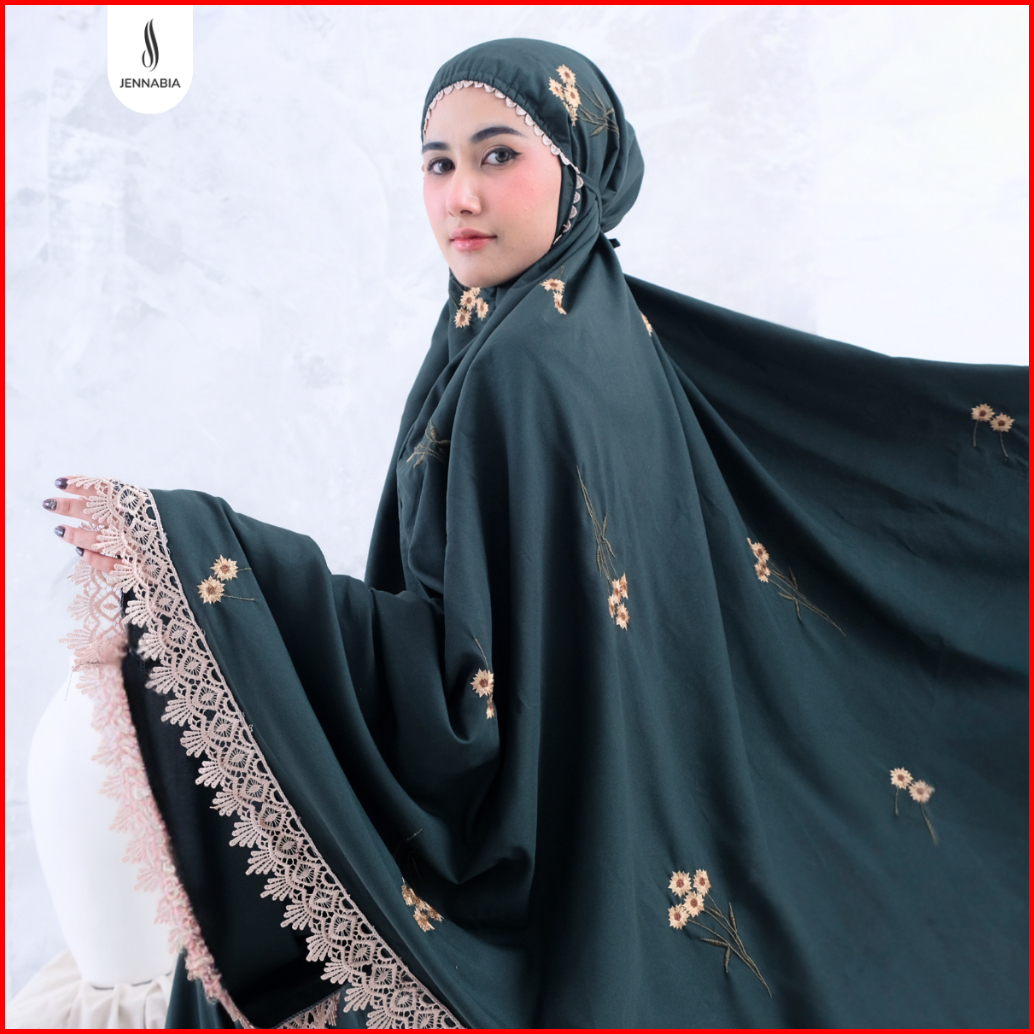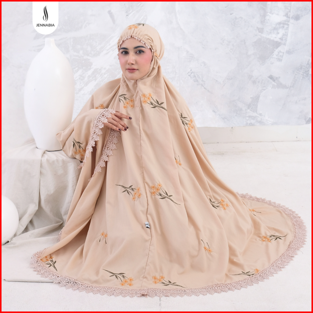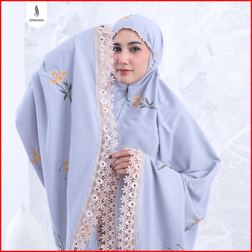 Jennabia - Mukena Katun Premium Bordir Bunga Sunflower Lembut Adem Nyaman Tas Dewasa