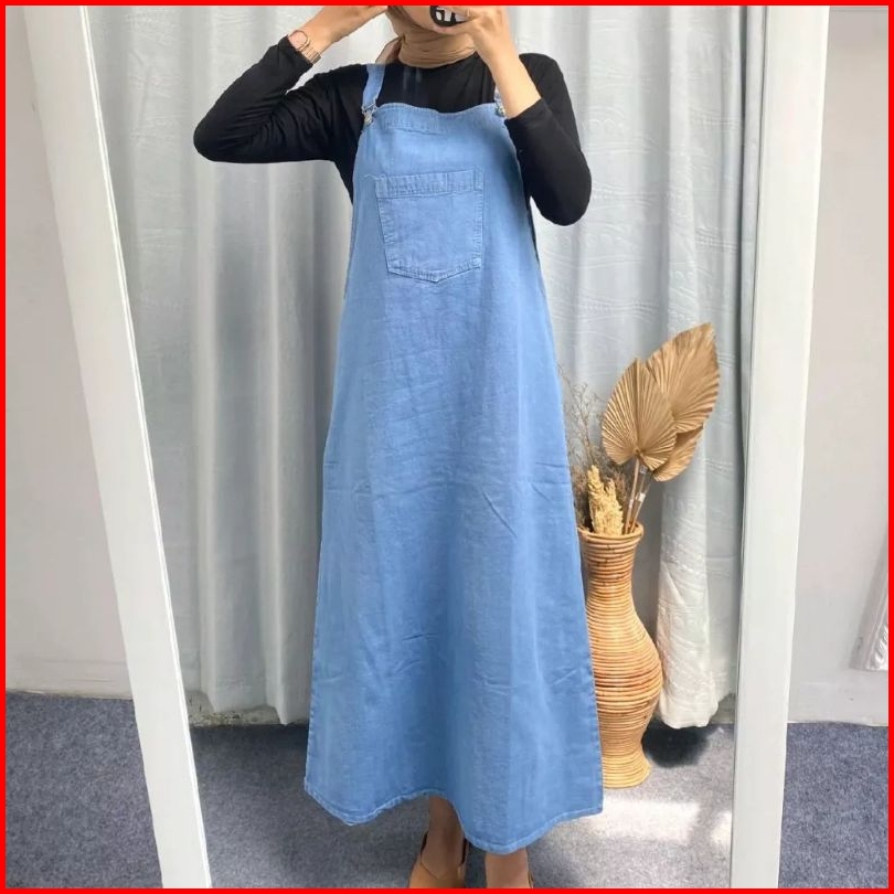 Overall Jumpsuit Jeans Wanita Pocket Polos Baju Kodok