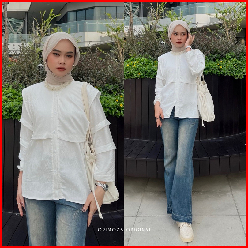 Orimoza Megan Blouse Bahan Katun Polo Linen