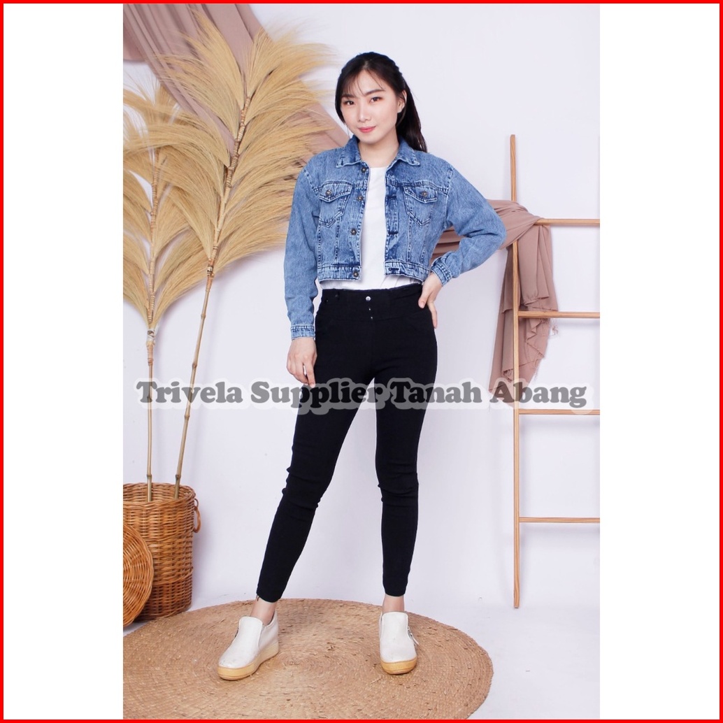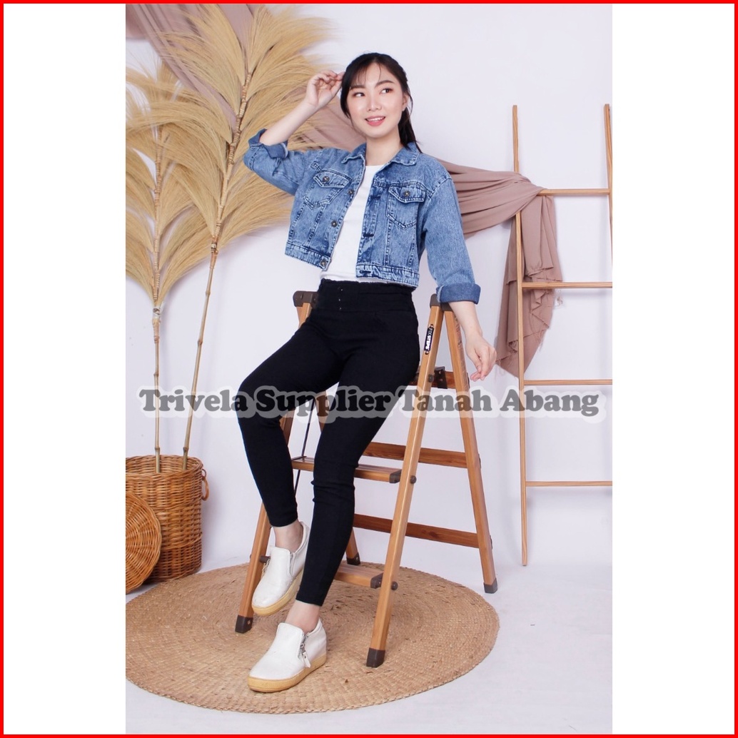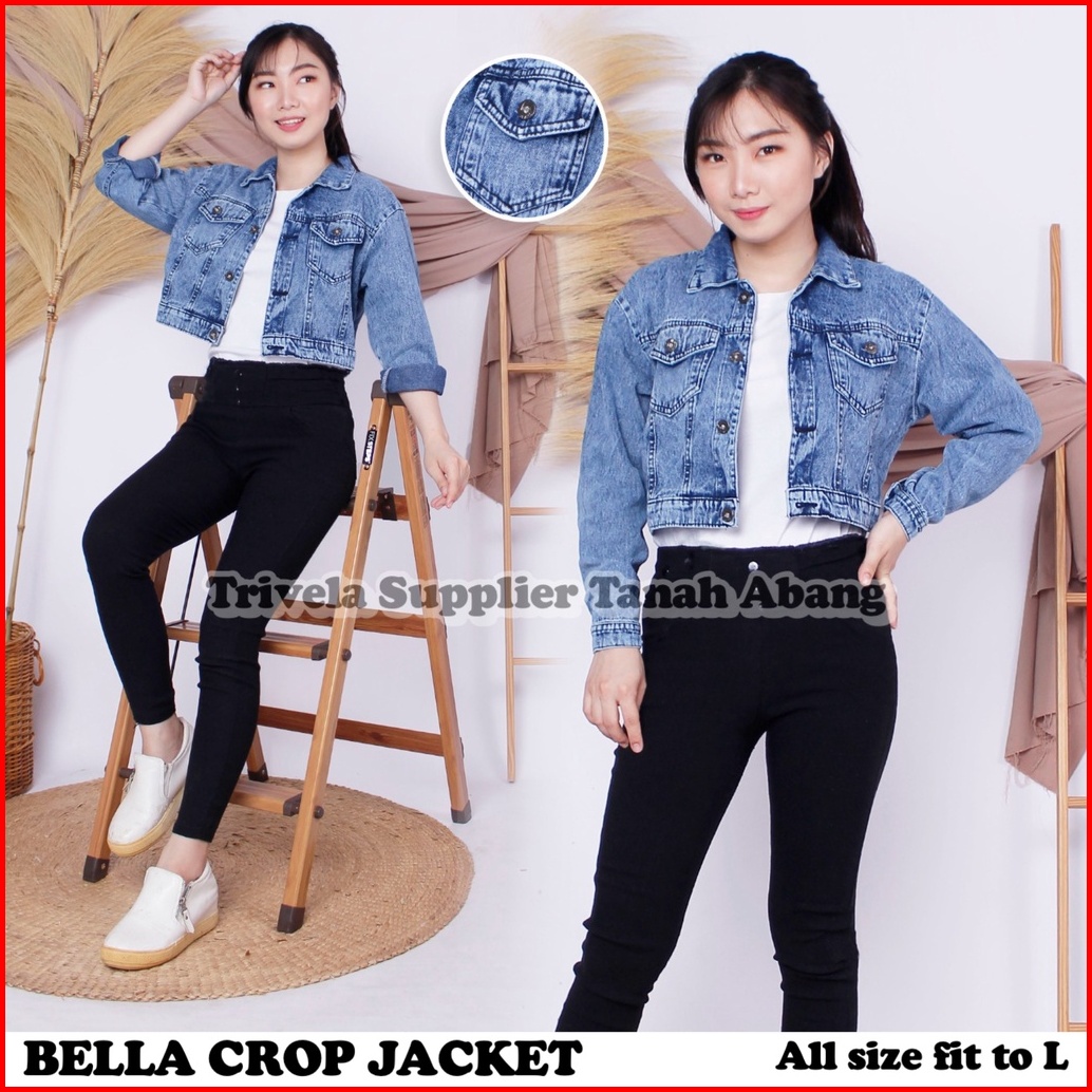 Jacket Jeans Crop Bella Jaket Jeans Crop Wanita